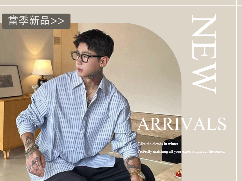 【單件/套裝】條紋休閑襯衫+西褲兩件套裝