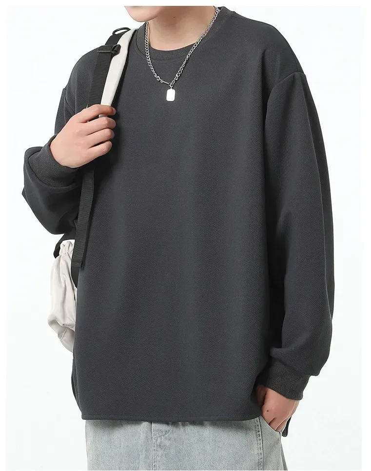 簡約素色內搭刷毛圓領華棉長袖T恤