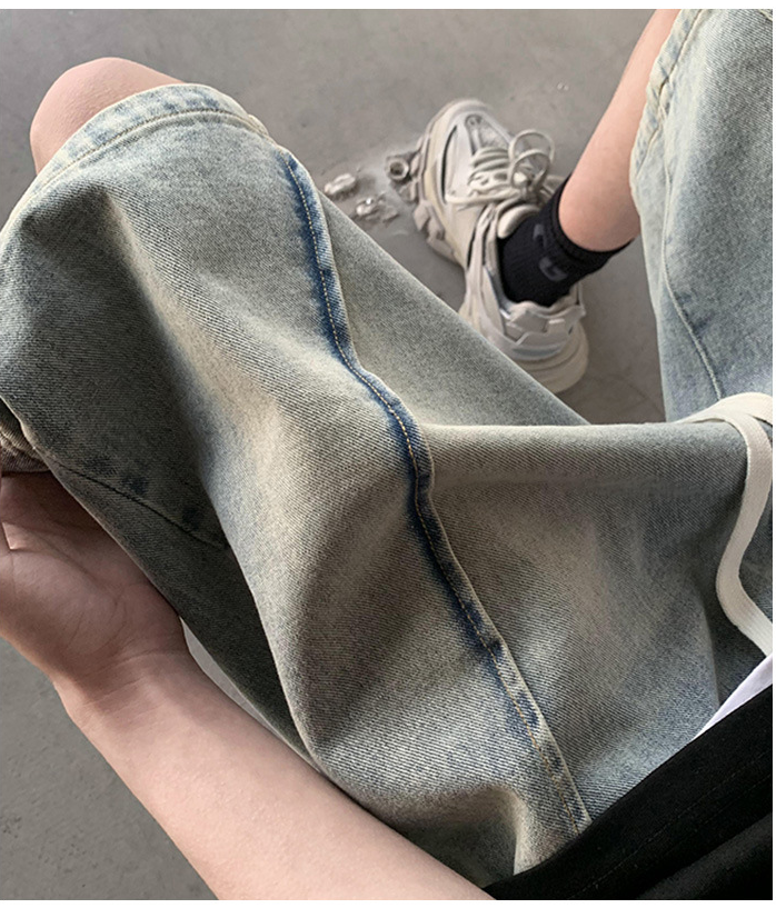 港味刷毛痞帥直筒寬鬆闊腿牛仔褲
