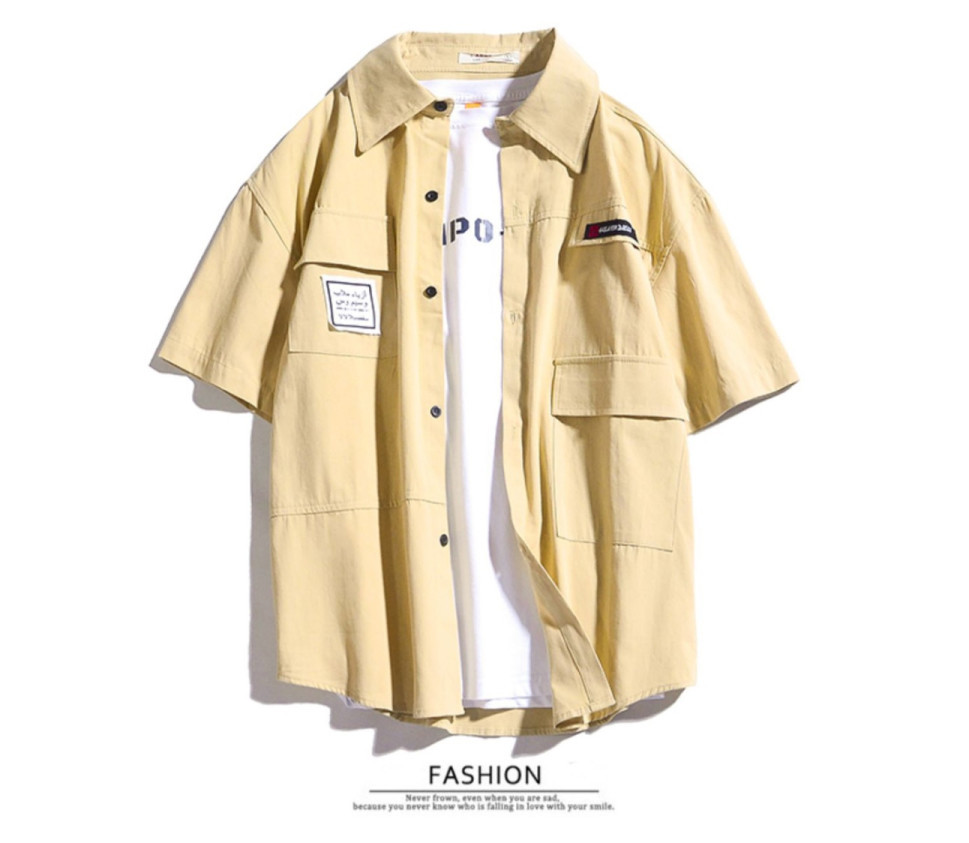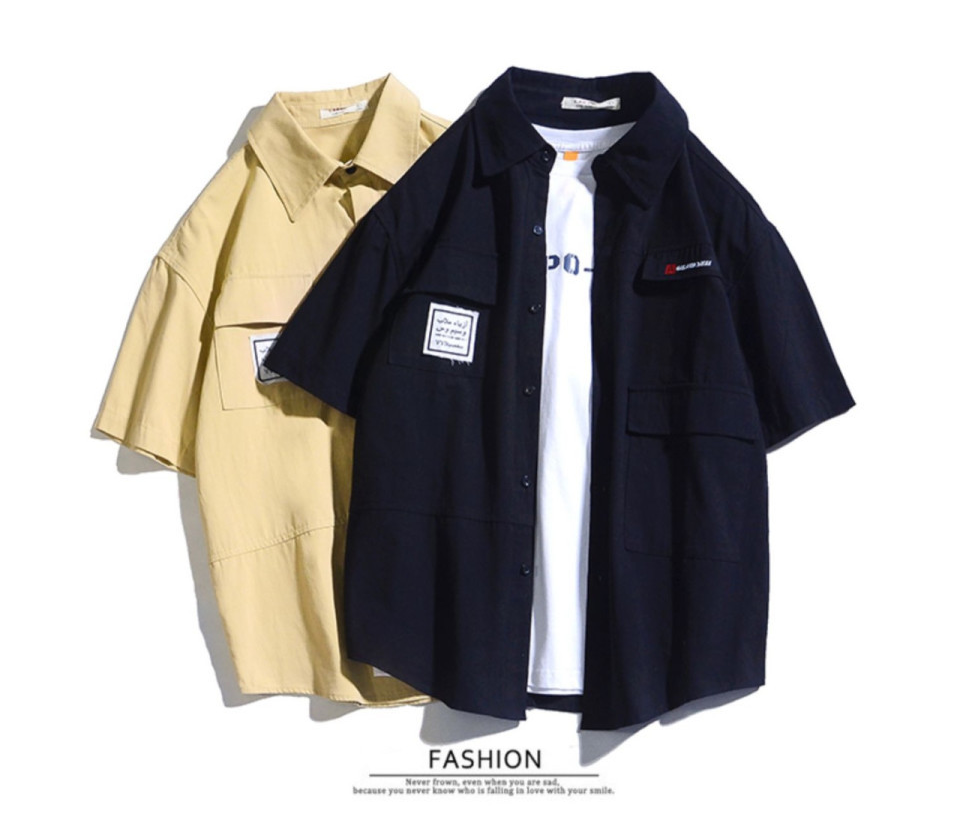 日系工裝短袖復古潮牌港風短袖襯衫
