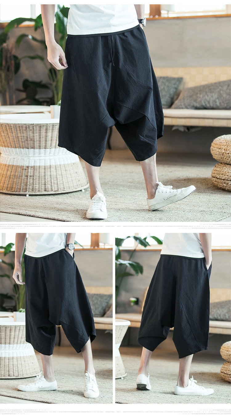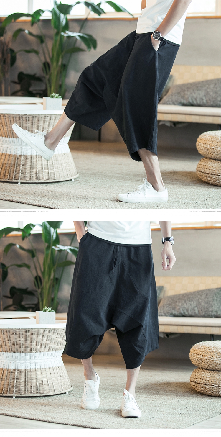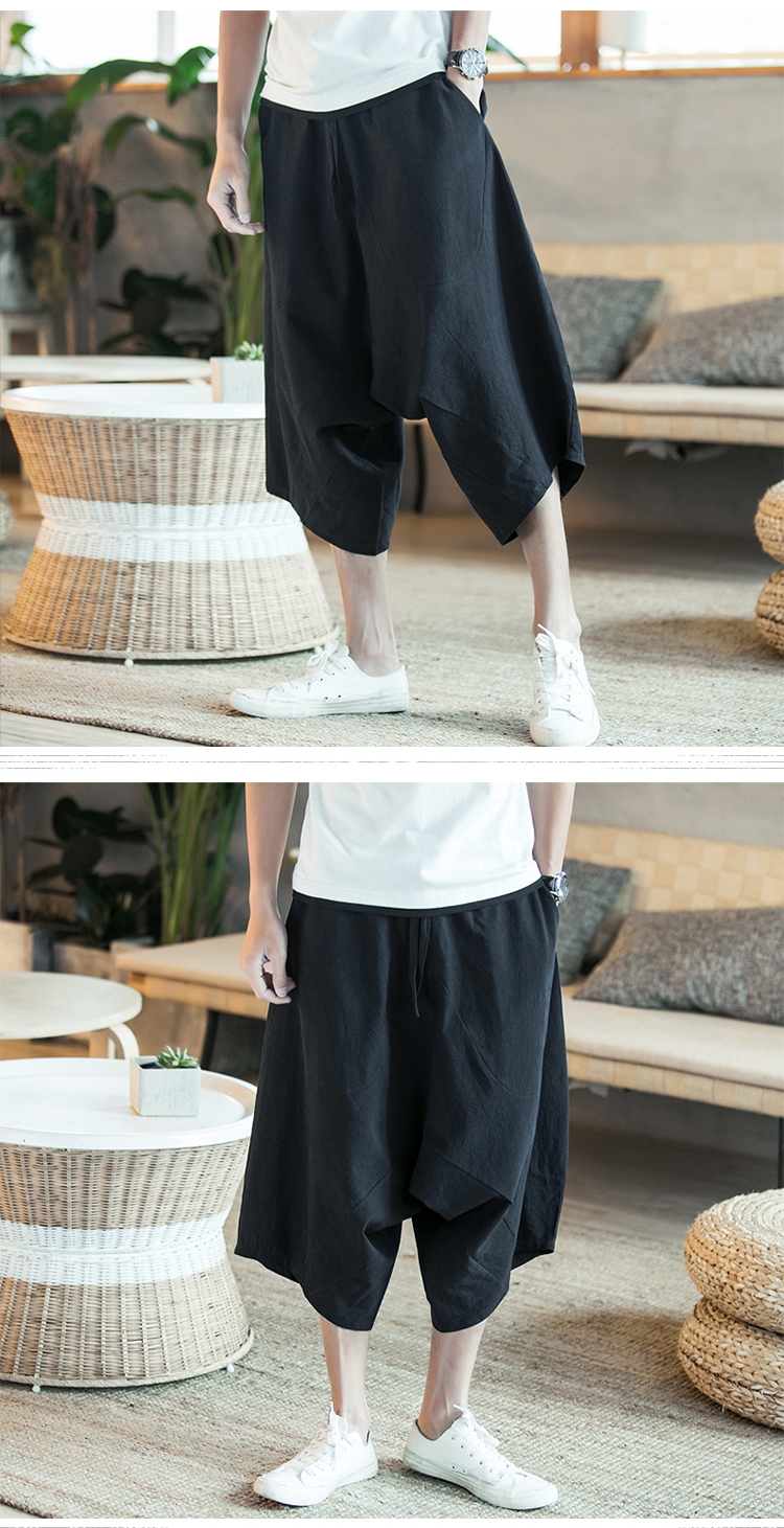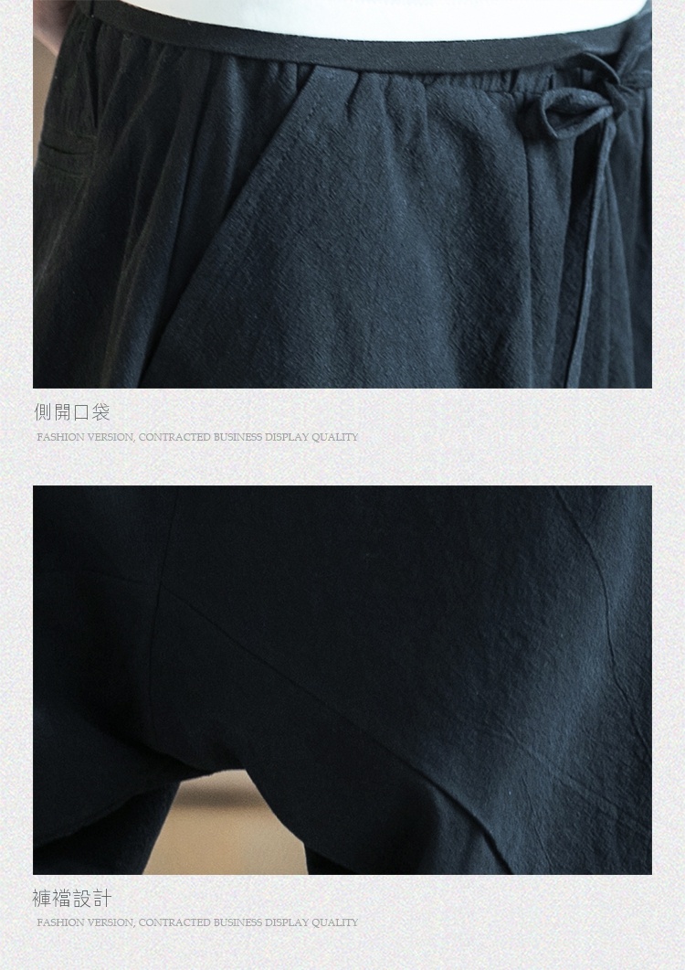 寬鬆薄款休閒亞麻潮流棉麻七分哈倫褲