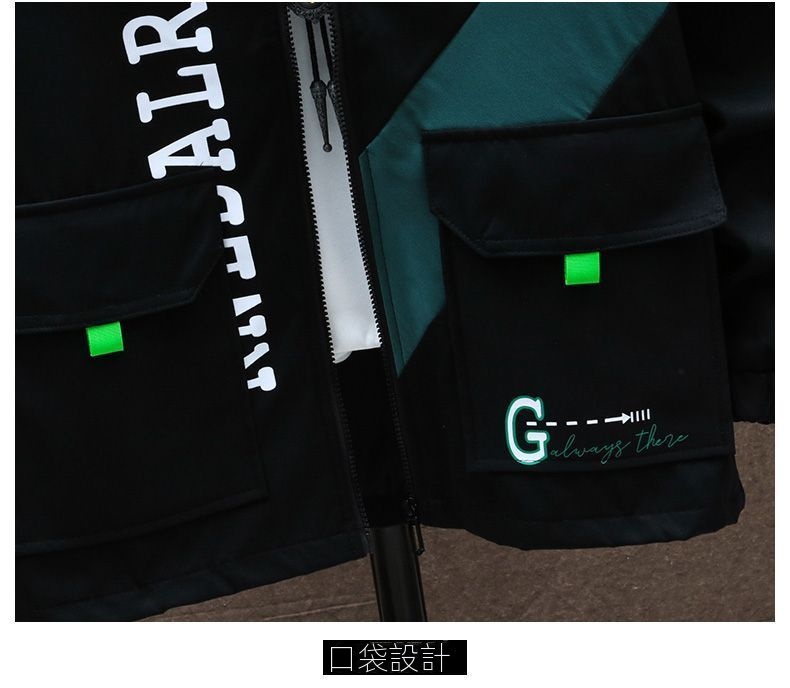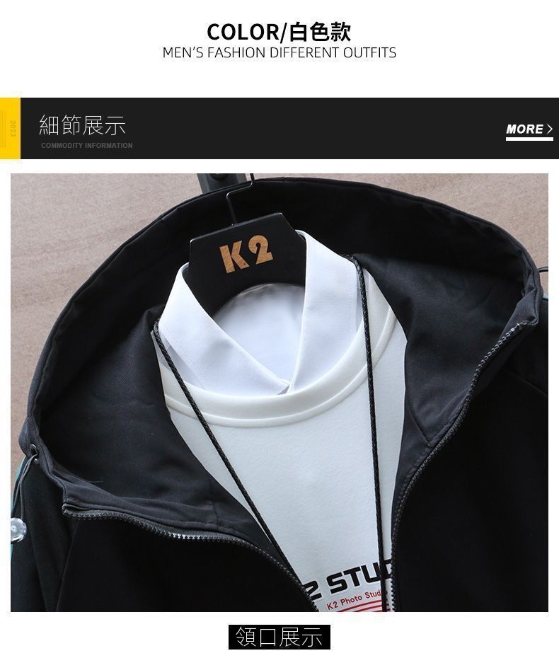 【單件/套裝】連帽撞色夾克+白色長袖T恤+休閒工裝褲三件套裝