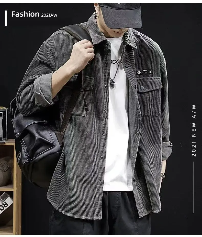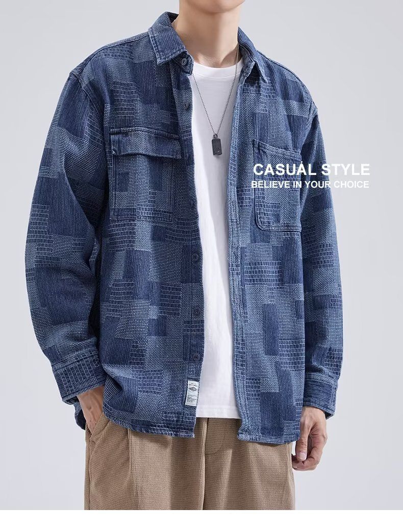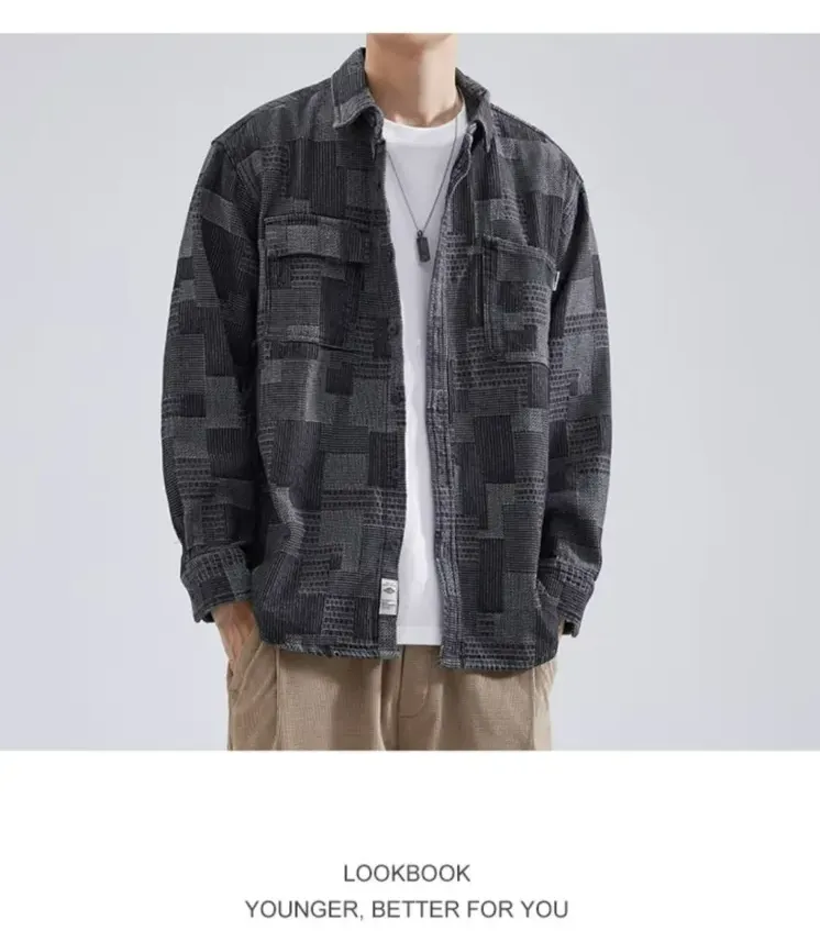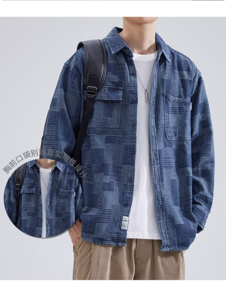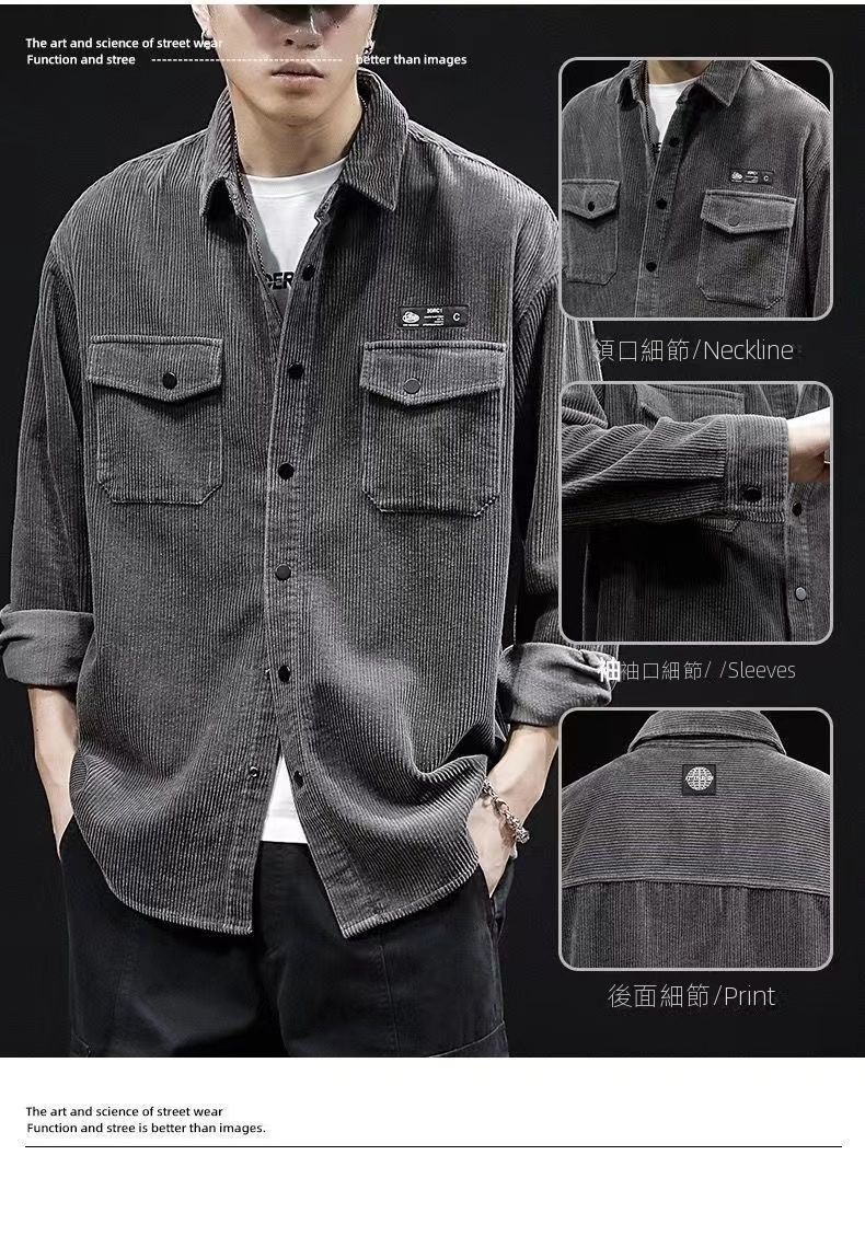 【單件/套裝】帥氣百搭襯衫外套+白色長袖T恤+寬鬆工裝褲三件套