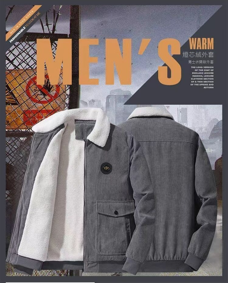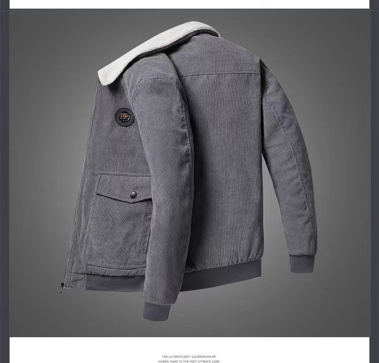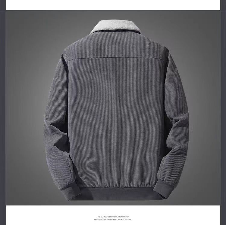 刷毛加厚寬鬆休閒工裝燈芯絨夾克拉鏈外套