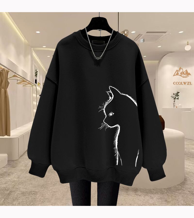 Oversize黑色美式復古圓領寬鬆長袖衛衣