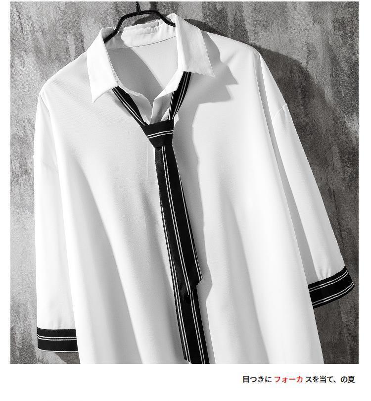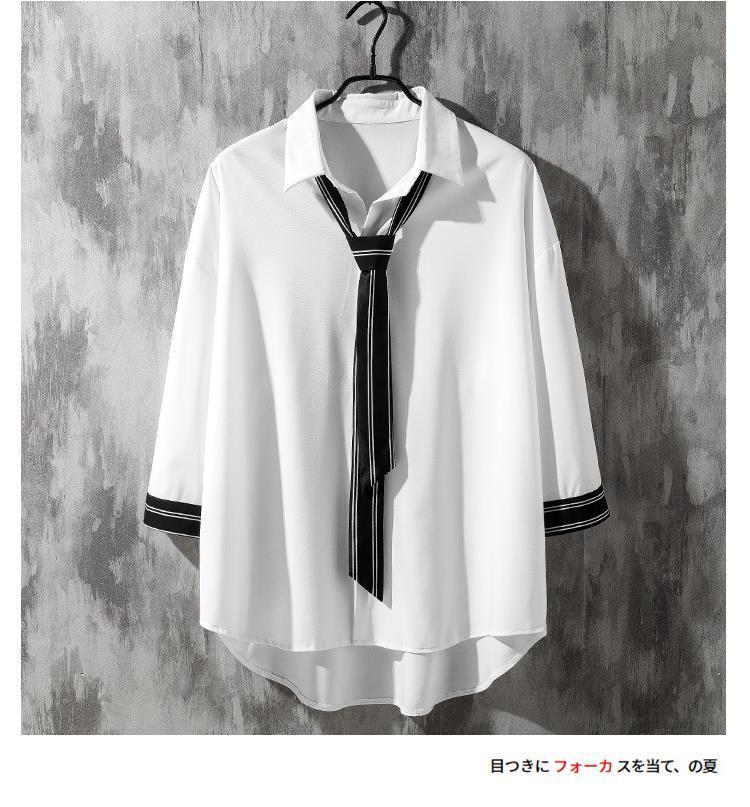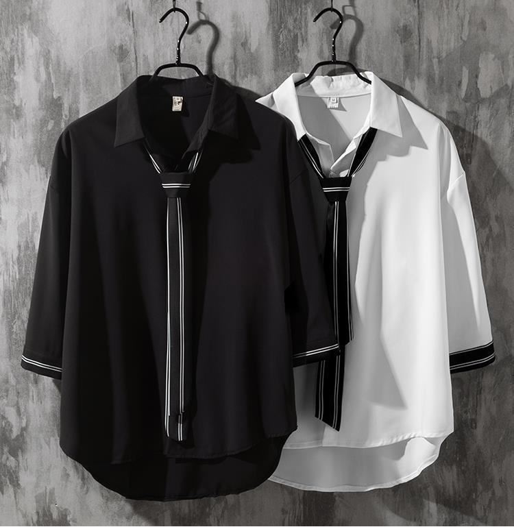 韓版帥氣百搭七分袖潮流學院風寬鬆襯衫