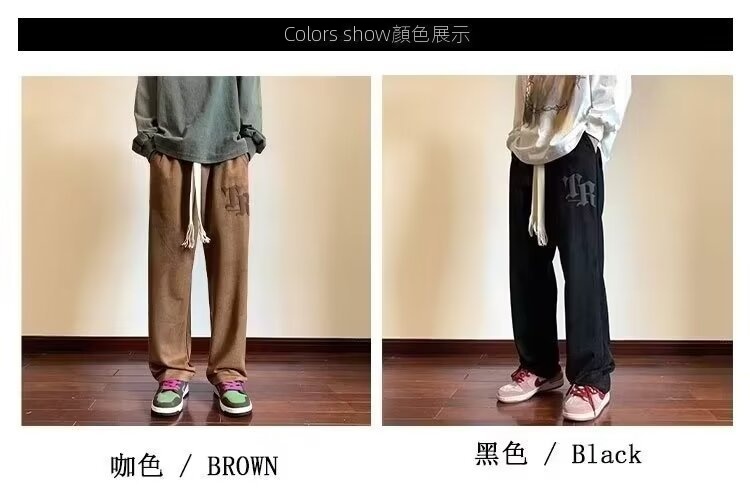 美式寬鬆直筒垂墜感闊腿褲運動休閒長褲