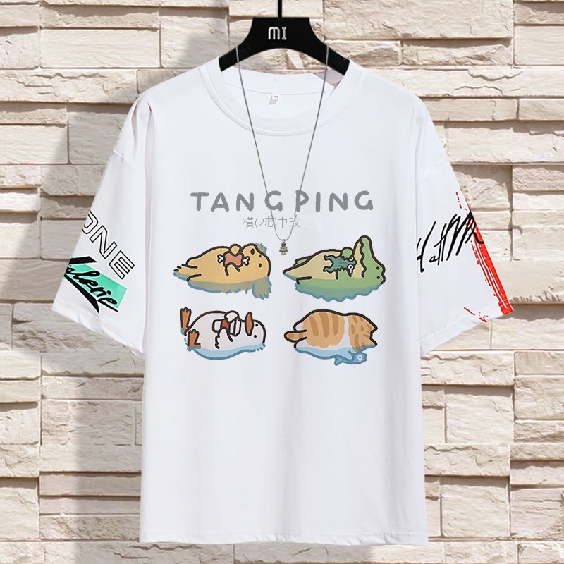 百搭潮流卡通IG情侶寬鬆五分袖T恤