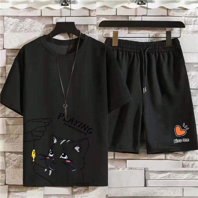 【套裝】時尚休閒運動修身韓版t恤短褲兩件套裝