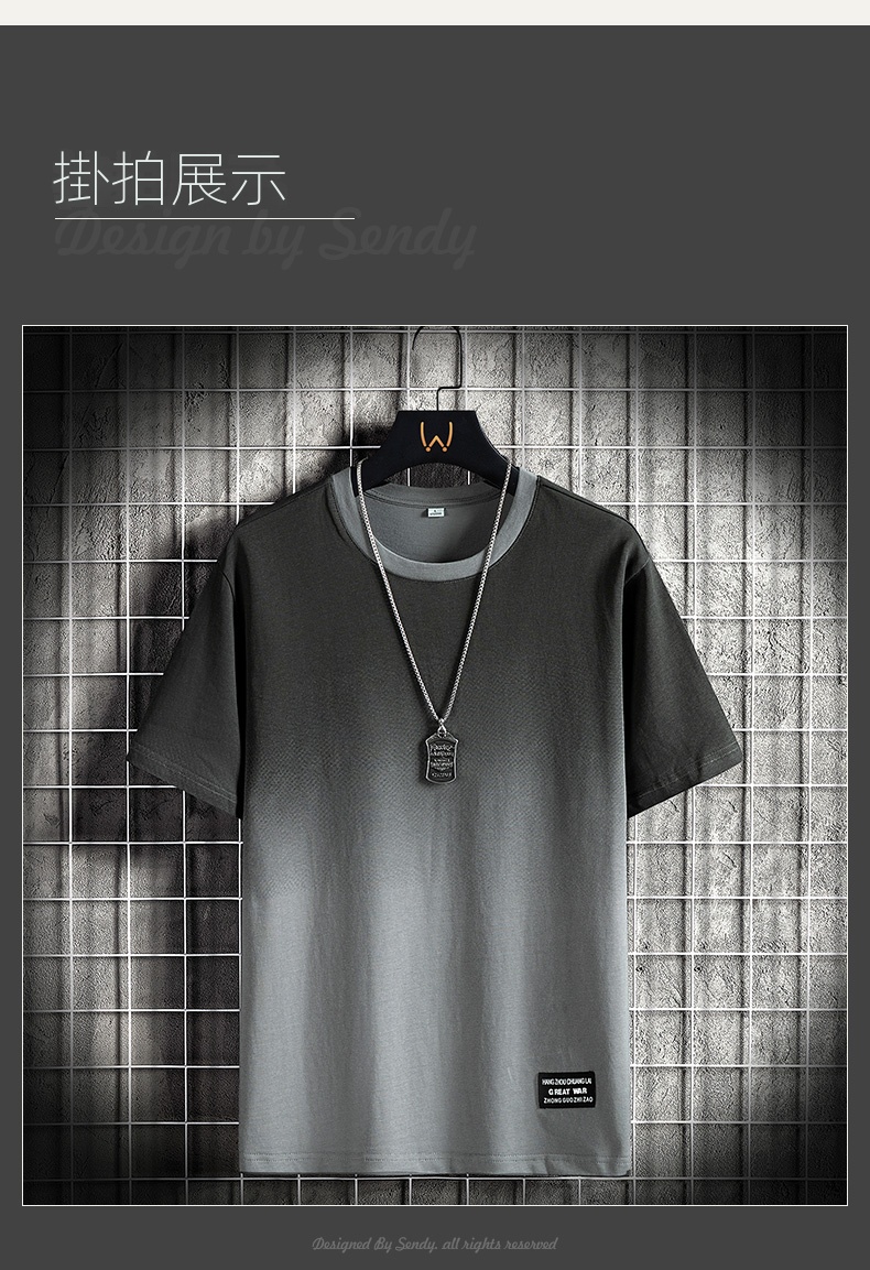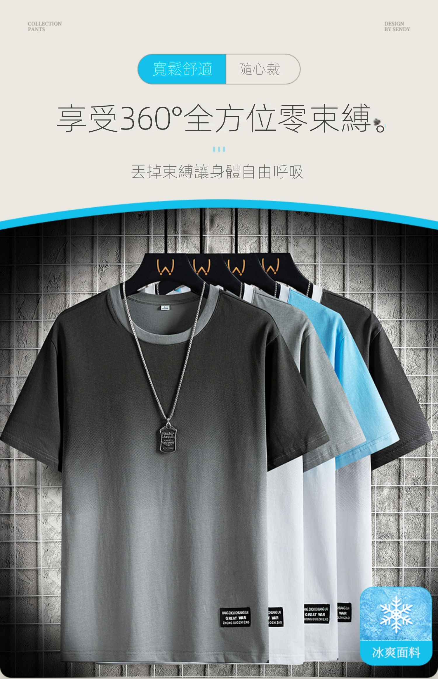 IG簡約百搭寬鬆冰絲半袖漸變T恤