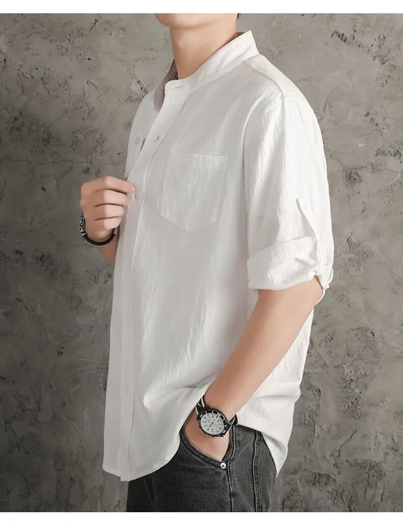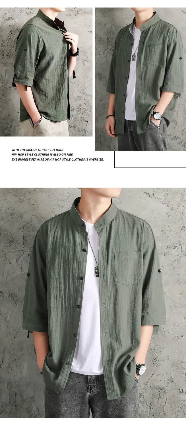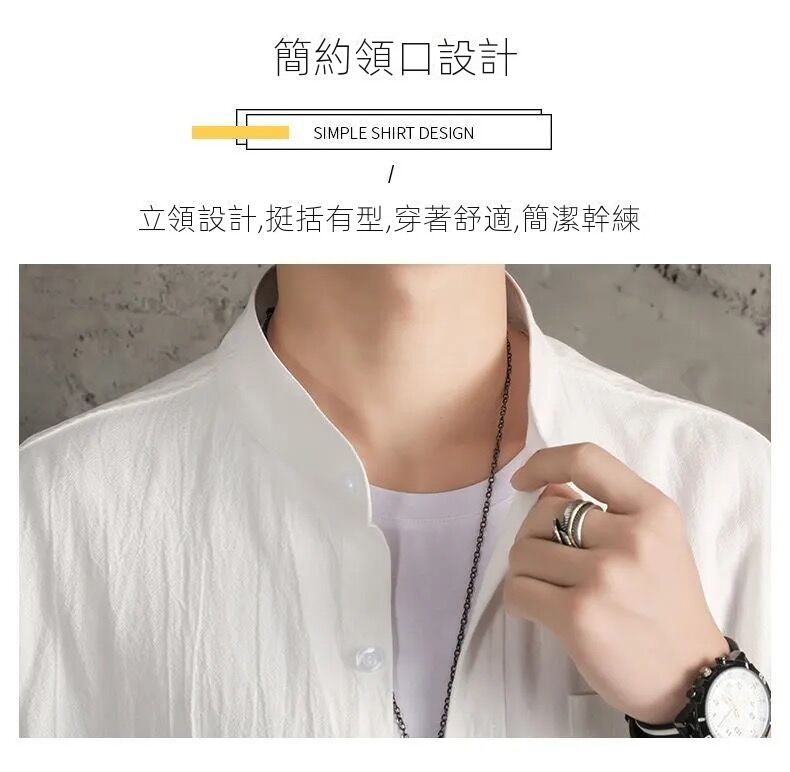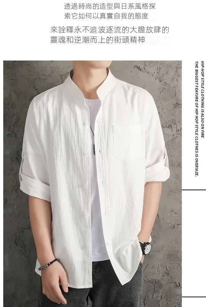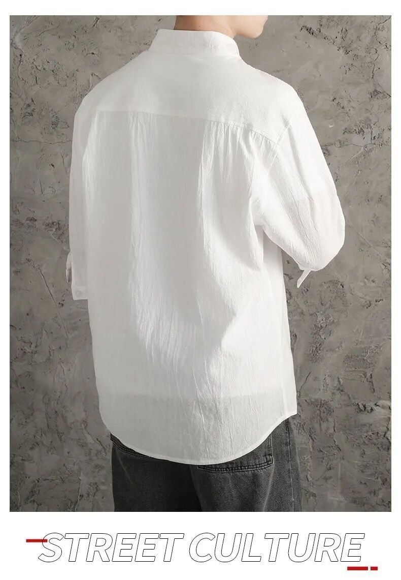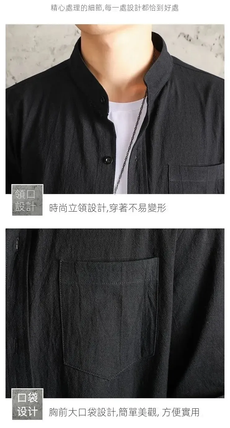 亞麻純色寬鬆國風棉麻休閒七分袖襯衫