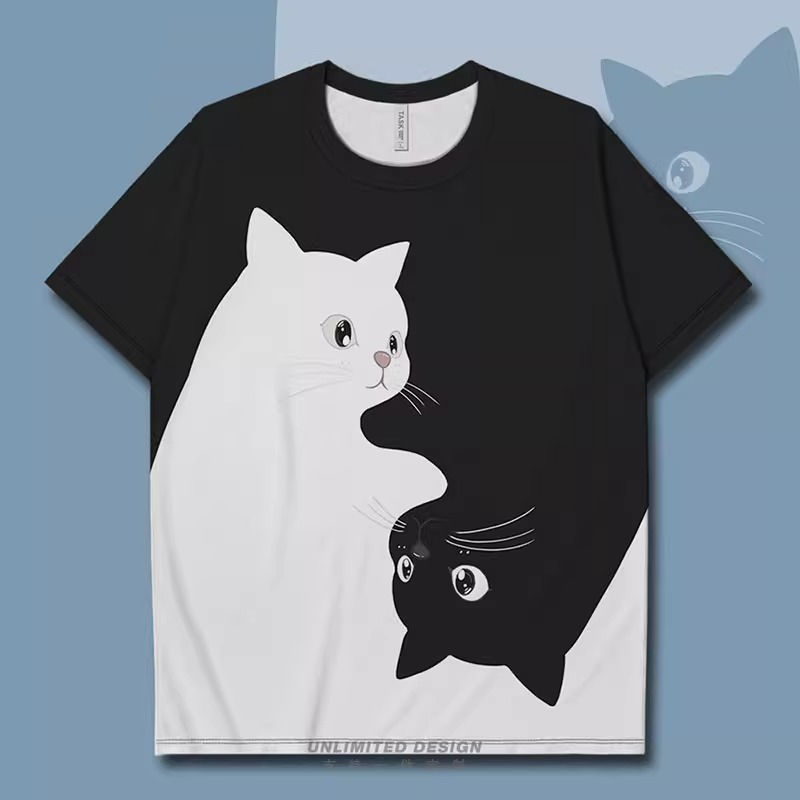 小貓咪黑白撞色簡約兩極設計潮流短袖T恤