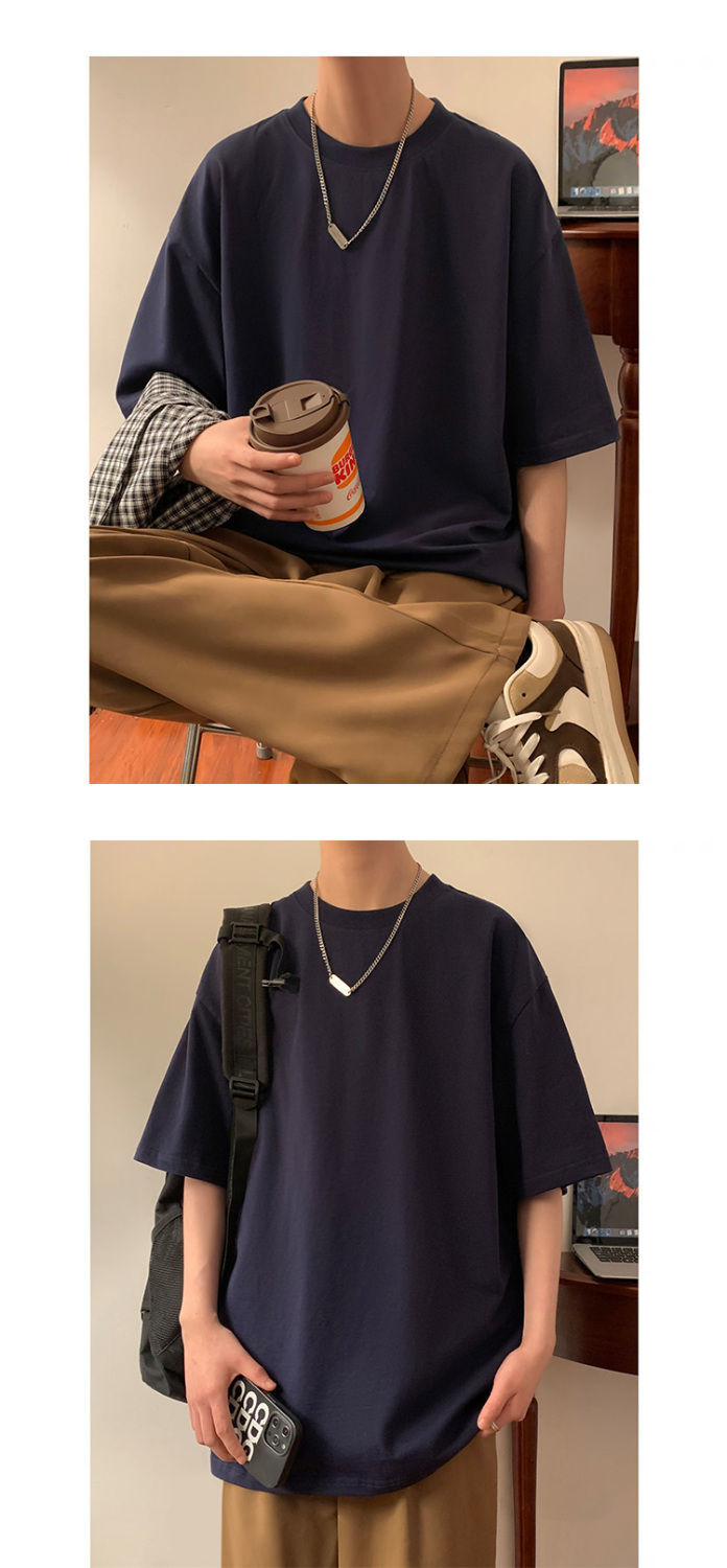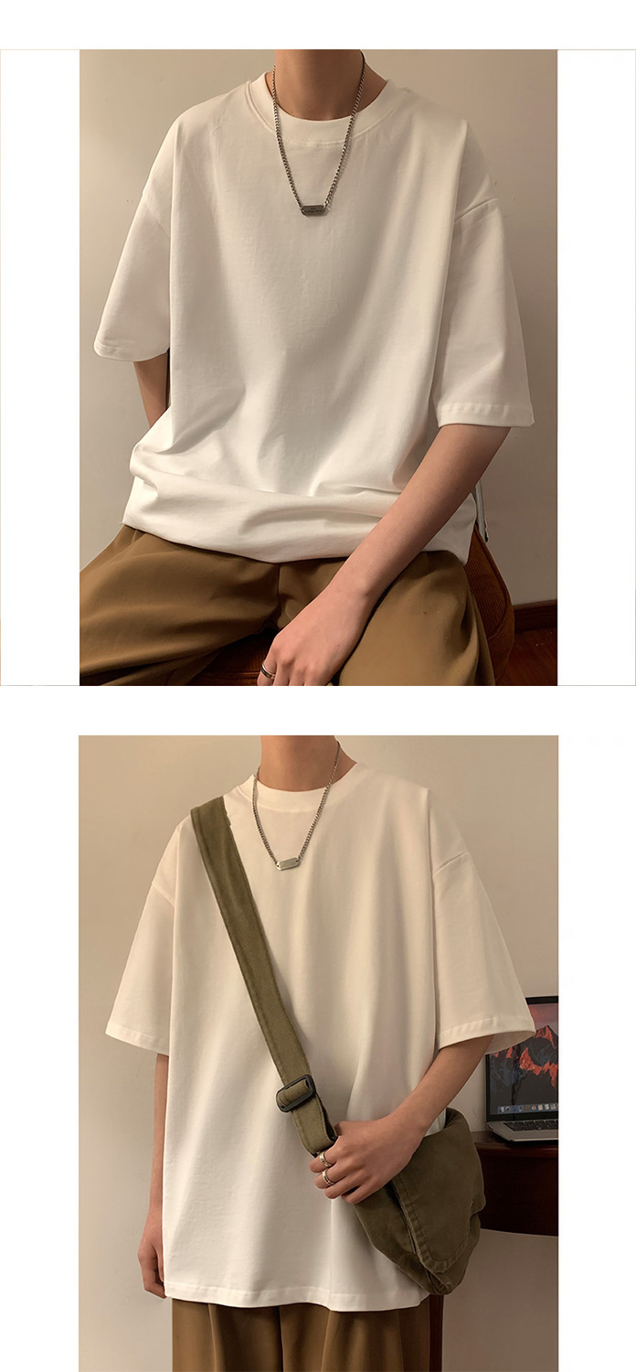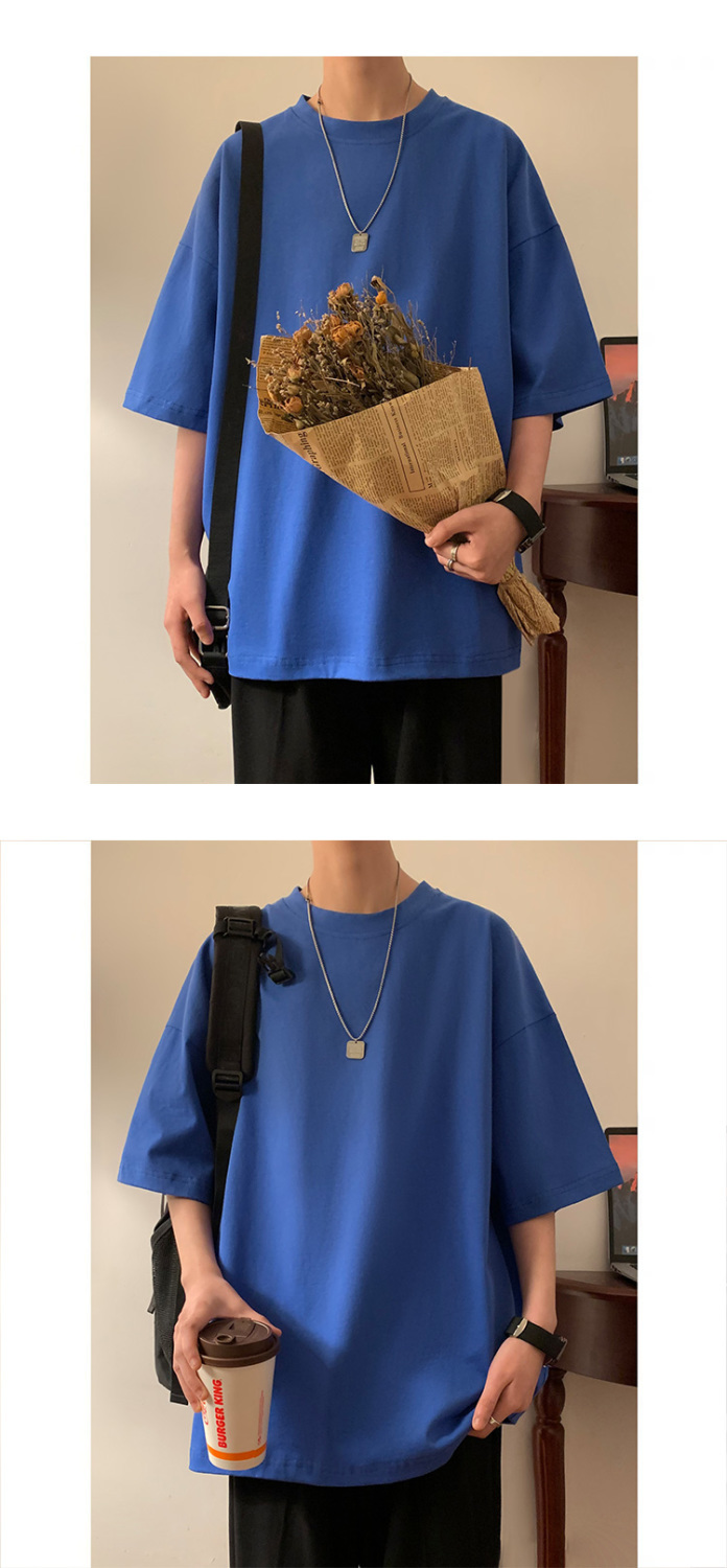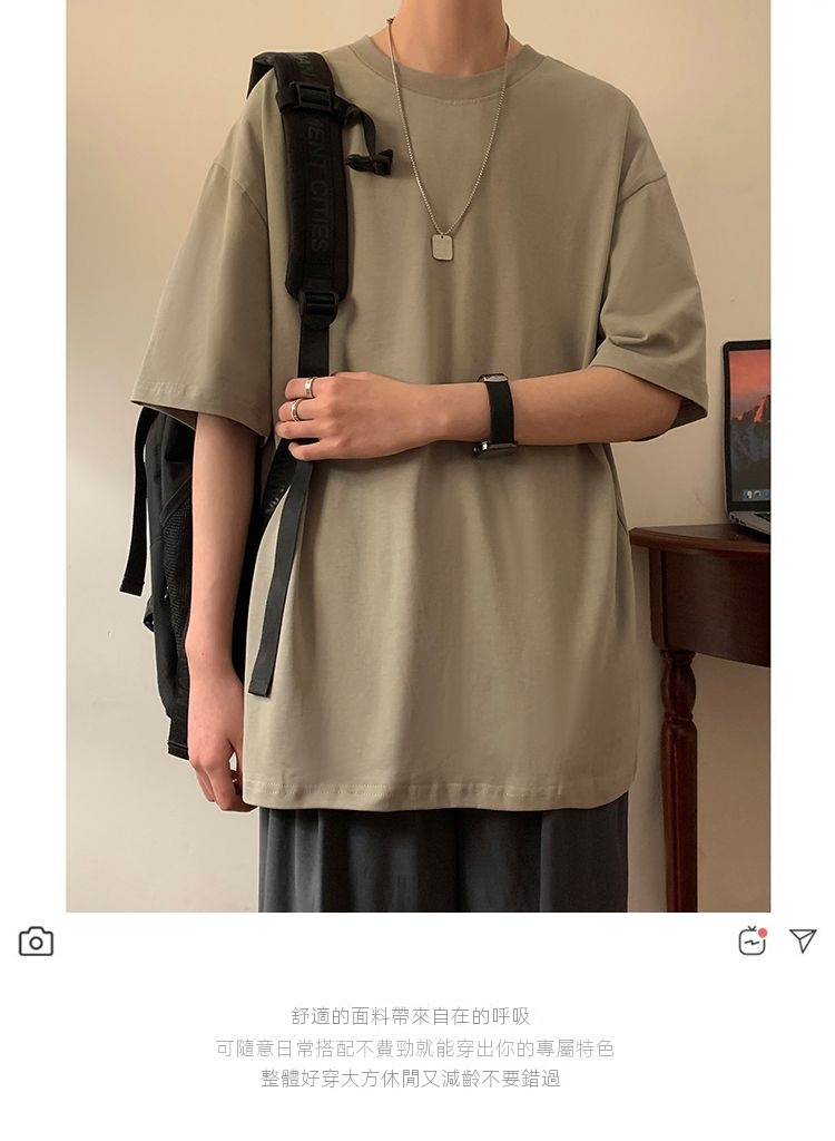 重磅新款ins潮純棉寬鬆純色五分袖短袖t恤