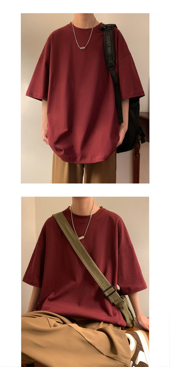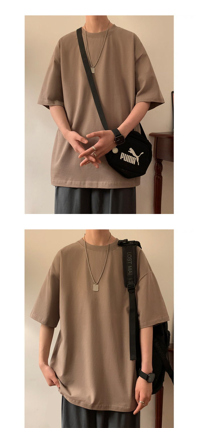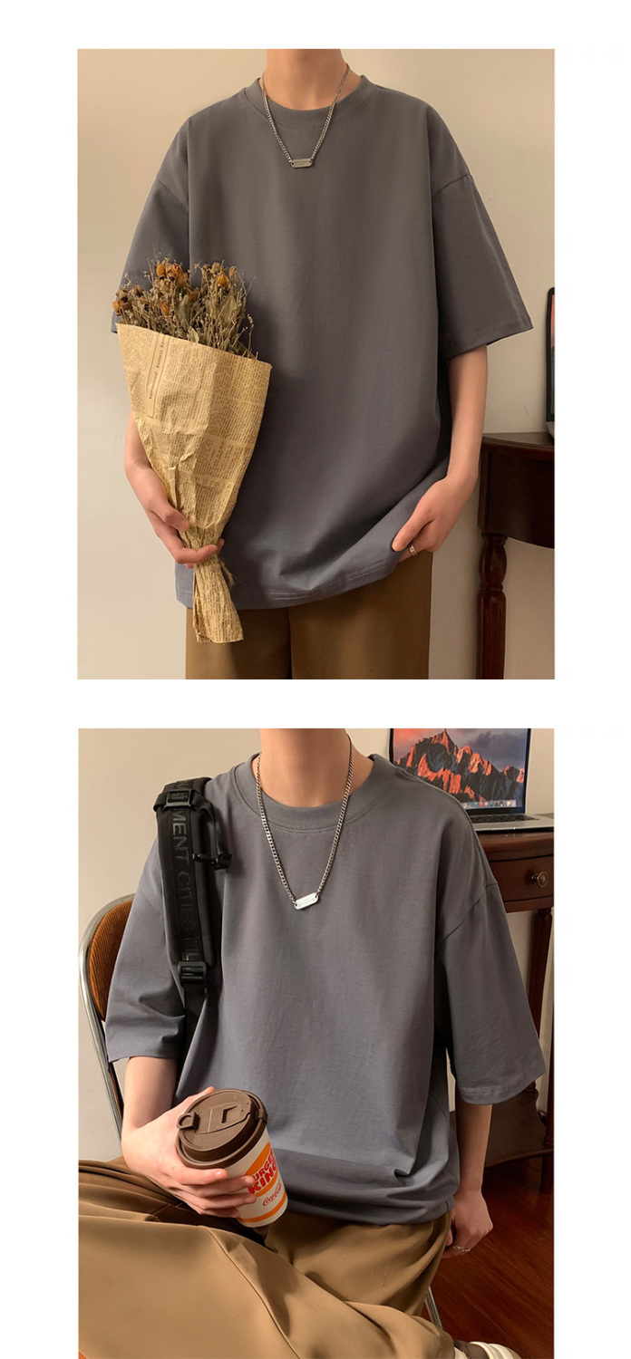 重磅新款ins潮純棉寬鬆純色五分袖短袖t恤