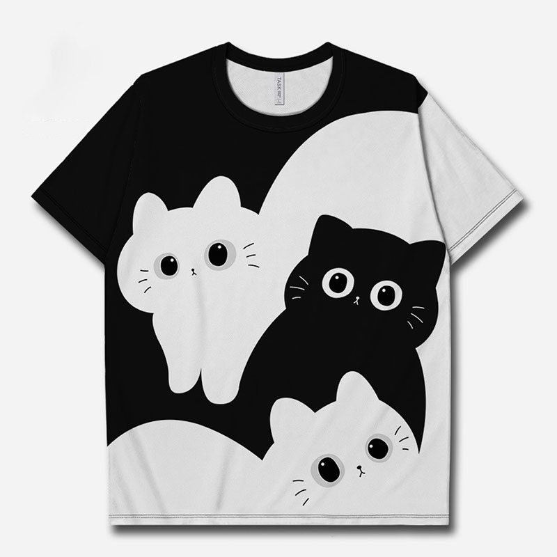可愛疊疊樂黑白貓咪簡約短袖T恤