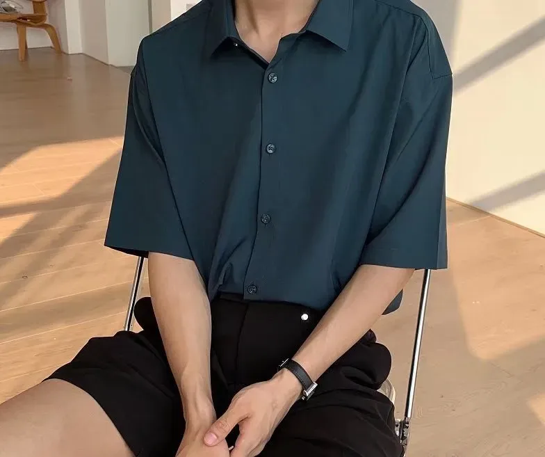 冰絲五分薄款ins寬鬆垂感休閒襯衫短袖