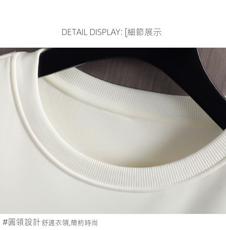 潮流純色肌理紋寬鬆圓領休閒長袖T恤