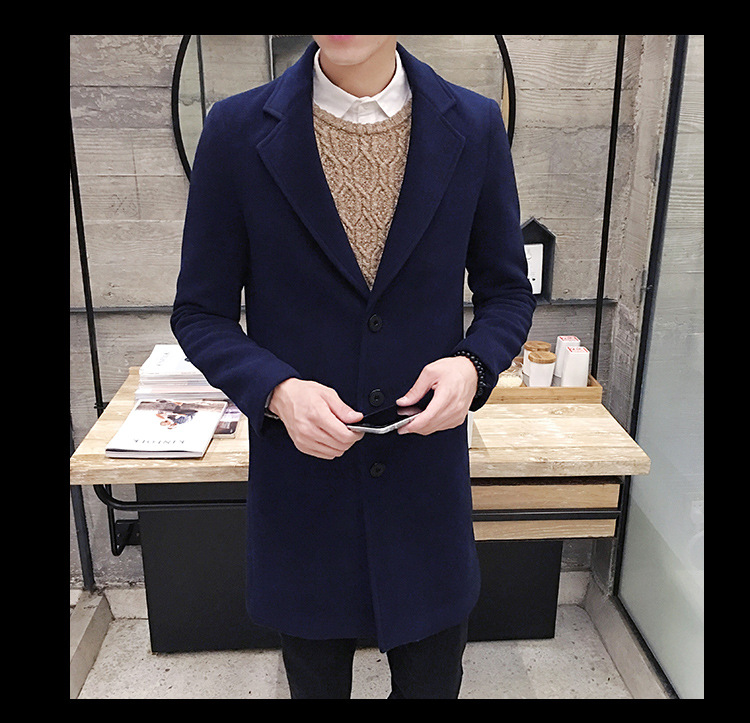 毛呢韓版修身中長款加厚呢子風衣