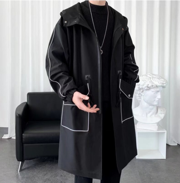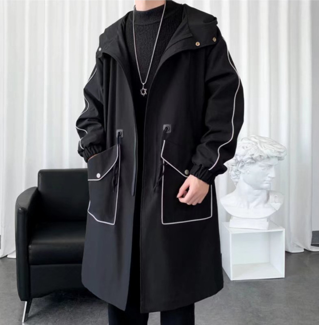 潮牌痞帥高級感中長款潮長袖風衣