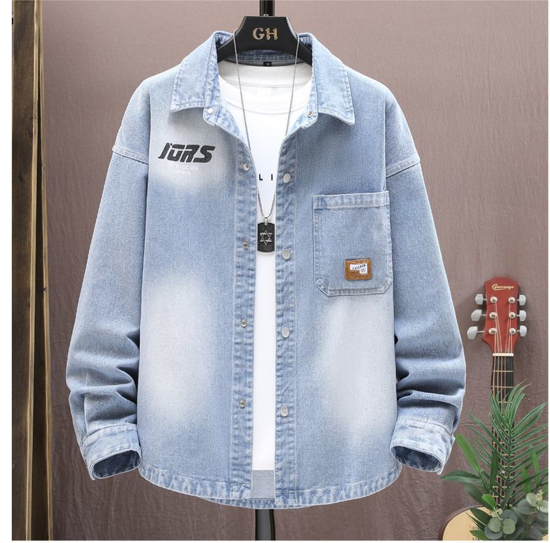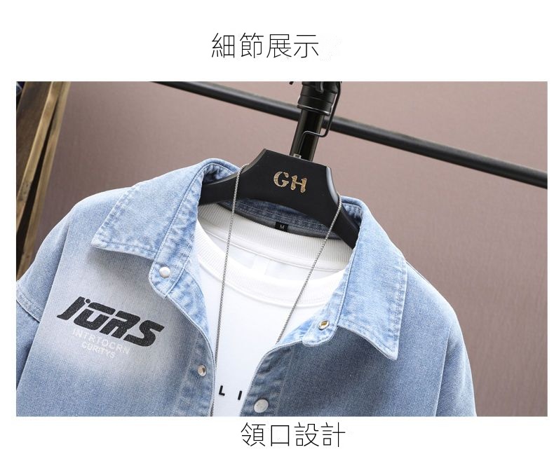 【套裝】牛仔翻領夾克襯衫+系帶牛仔褲兩件套裝