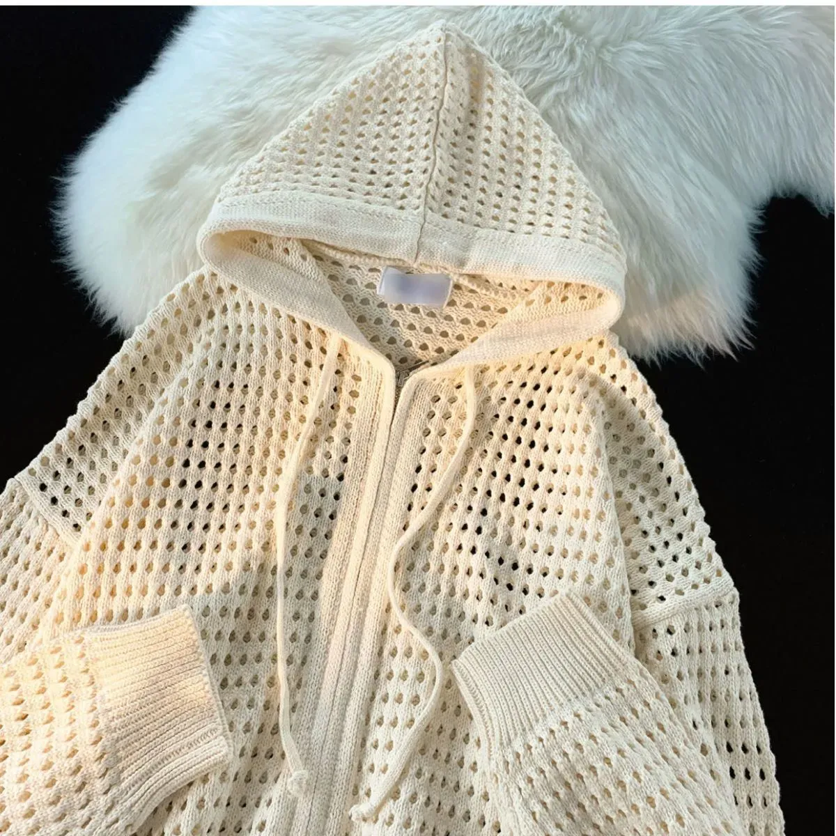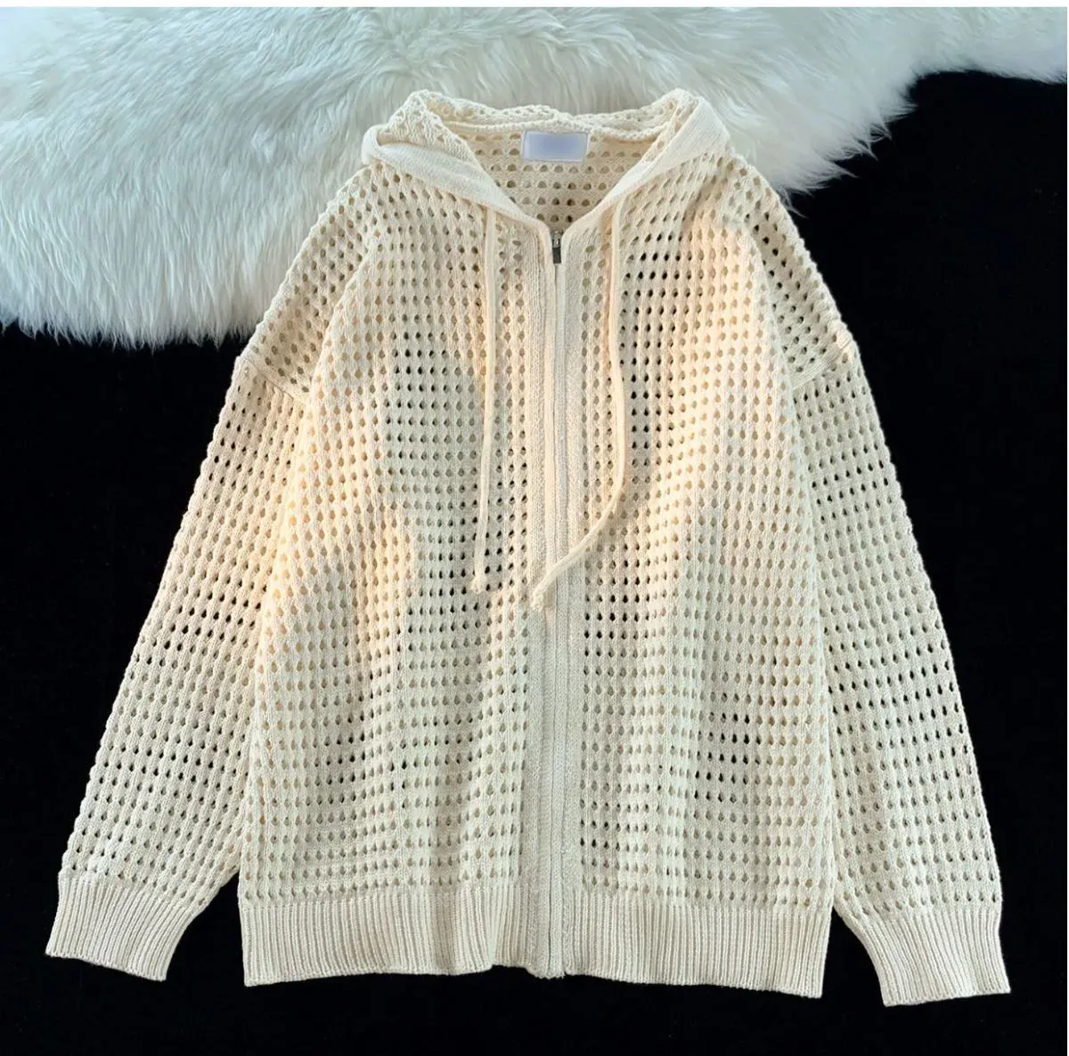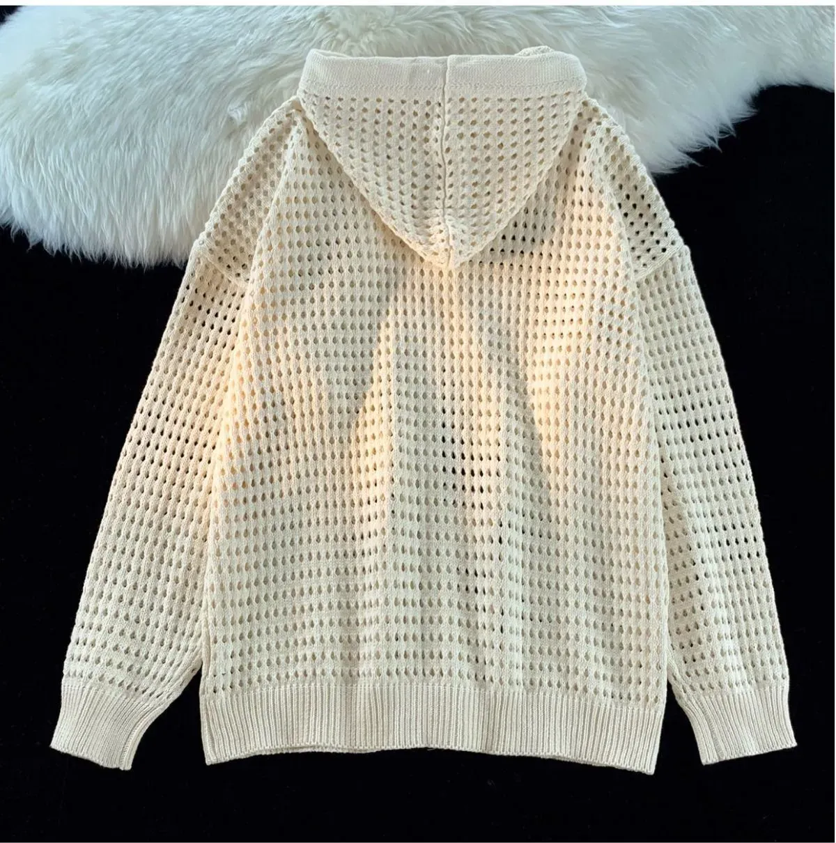 慵懶風潮流設計感防曬鏤空連帽開衫