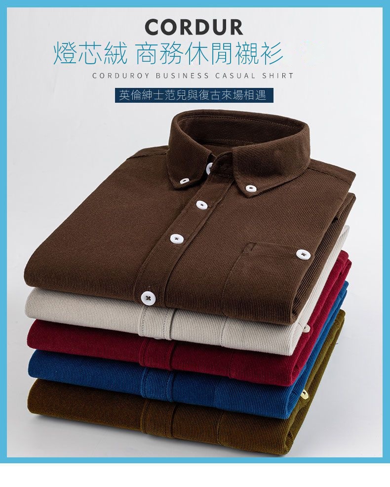寬鬆純色磨毛胸口袋英倫風燈芯絨長袖襯衫