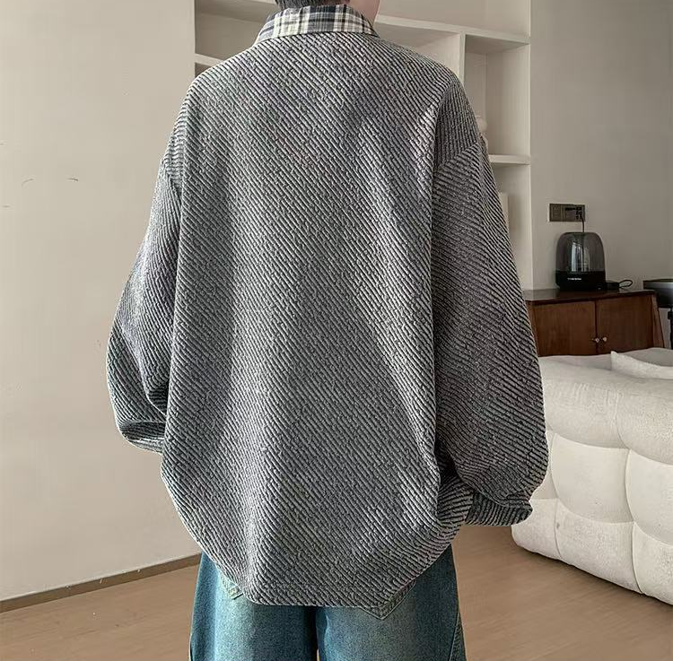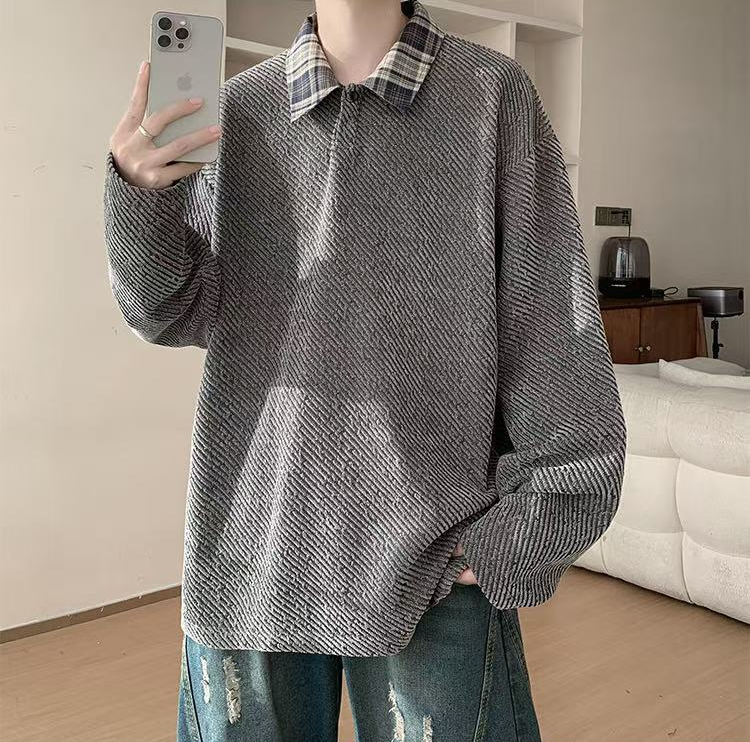 假兩件針織polo打底衫寬鬆大碼長袖t恤