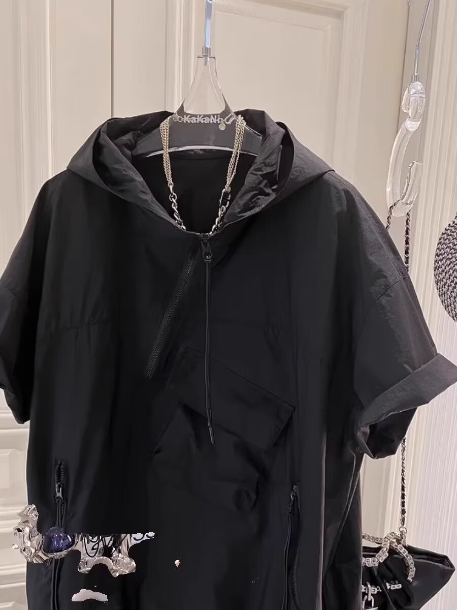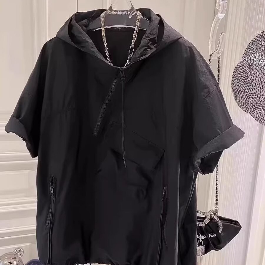 防曬衫港風休閒不規則百搭連帽短袖T恤