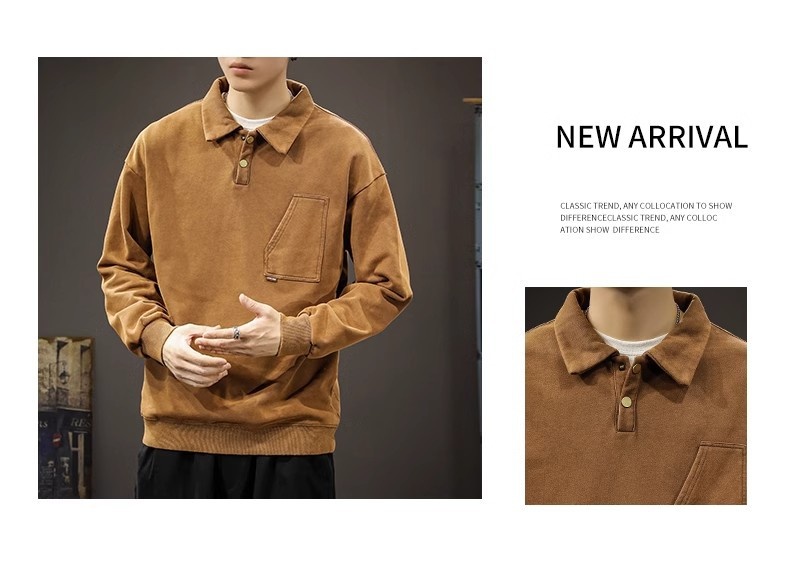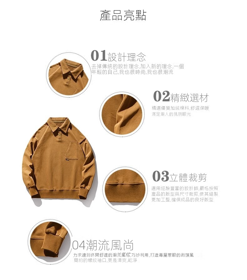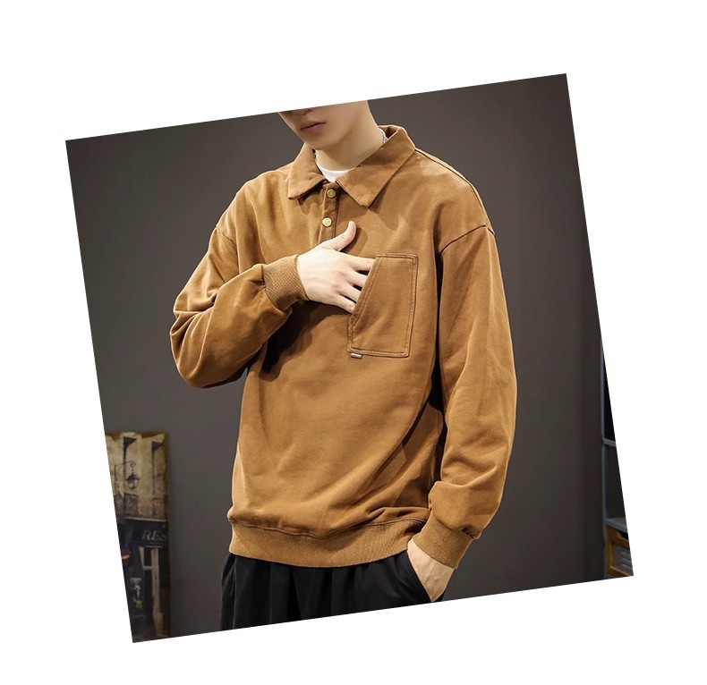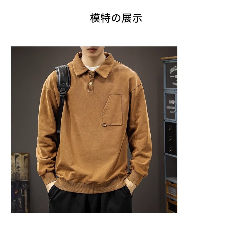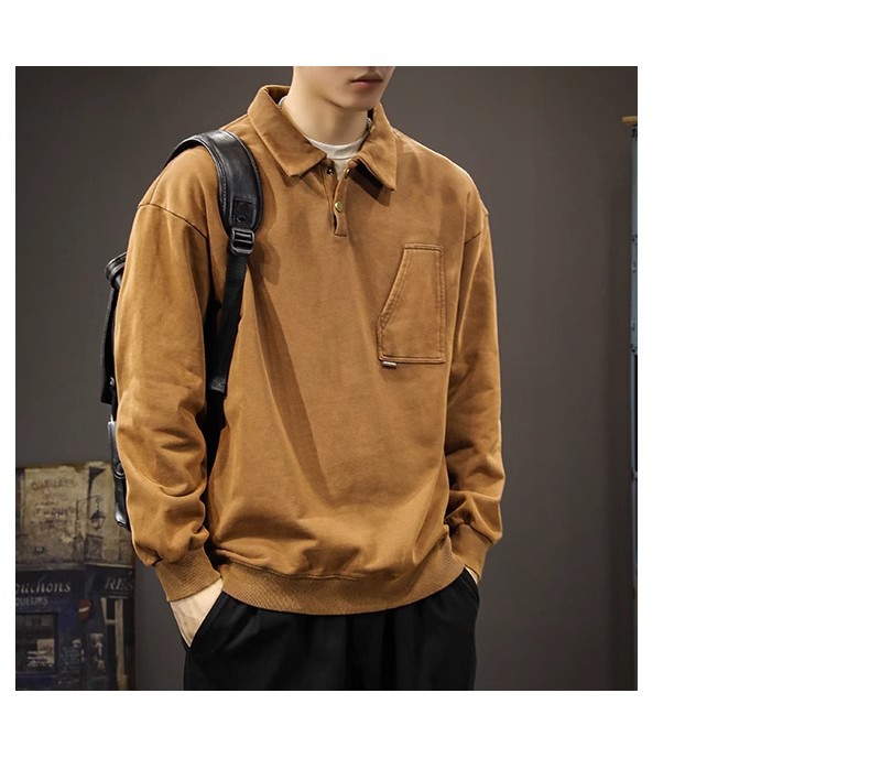 重磅美式復古POLO領寬松大碼百搭痞帥長袖衛衣