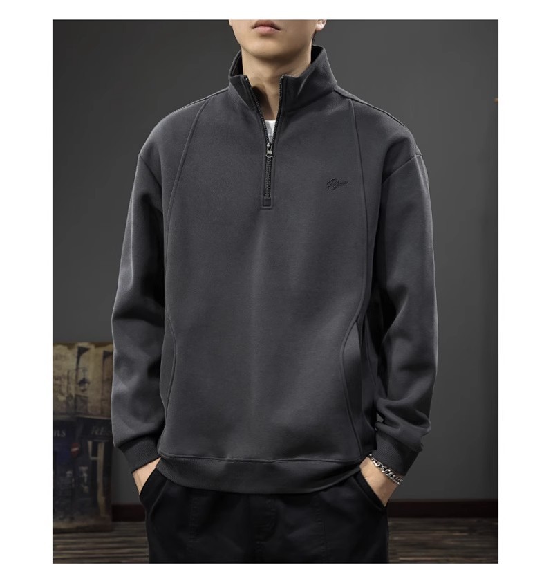 重磅磨毛刺繡美式復古半拉鏈立領寬鬆衛衣