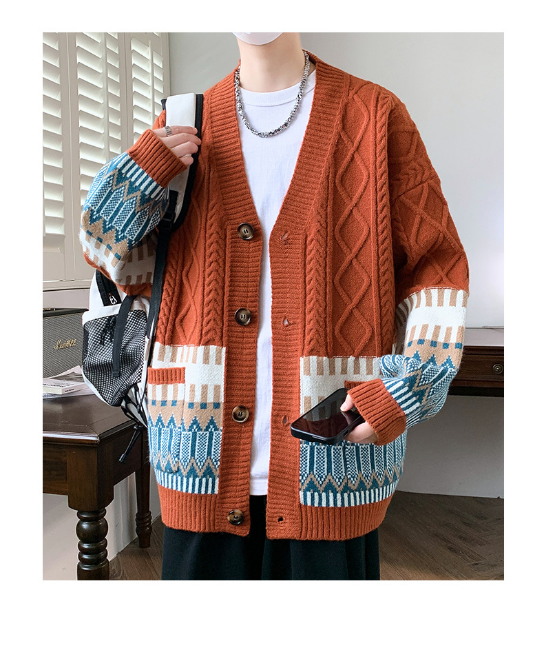 美式寬鬆麻花V領慵懶風情侶針織開衫