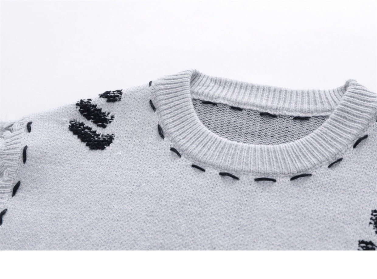拼色毛衣潮流圓領套頭長袖針織衫