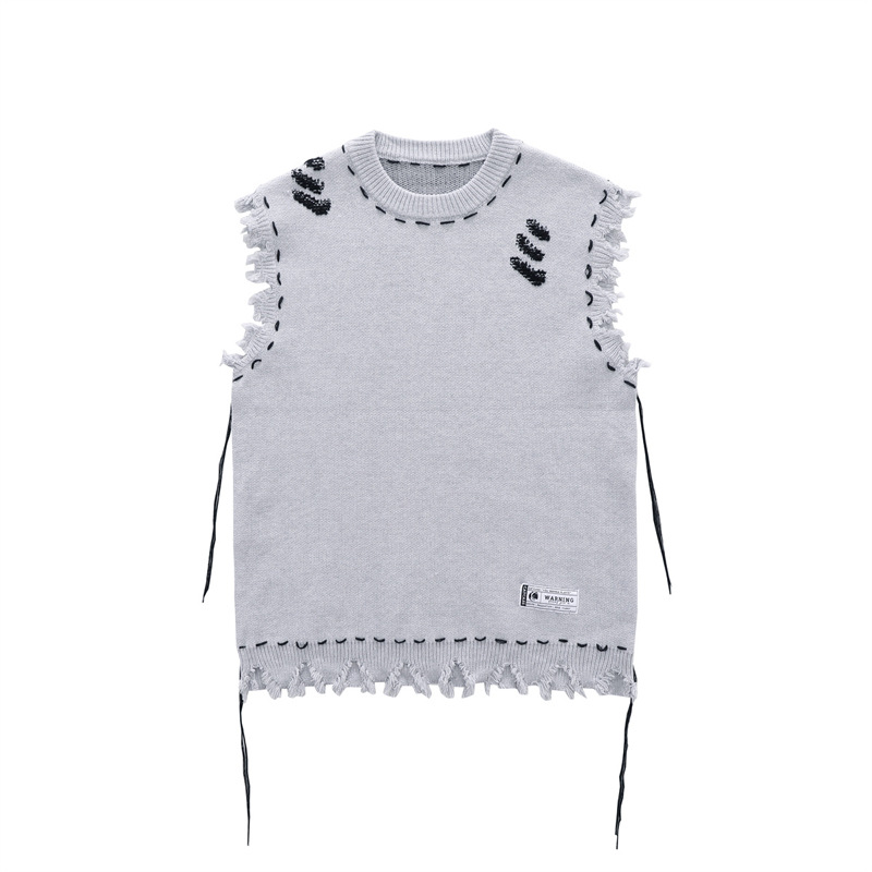 美式vibe高街破坏感毛边马甲毛衣男街头潮流无袖针织衫ins高级感