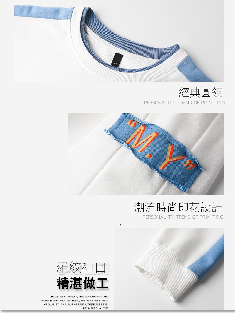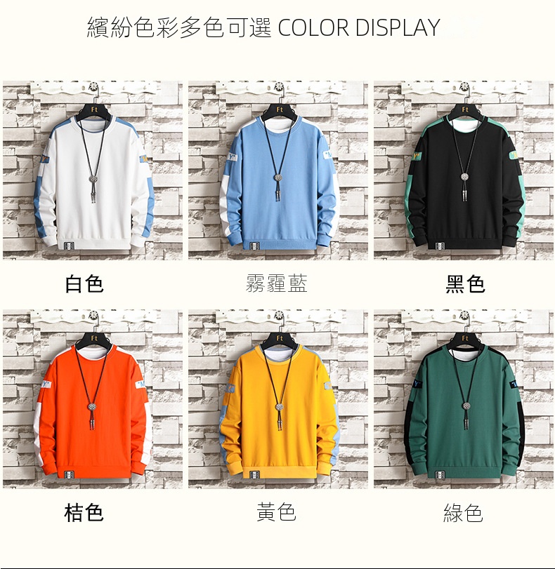 時尚潮流拼色寬鬆圓領長袖T恤休閒衛衣