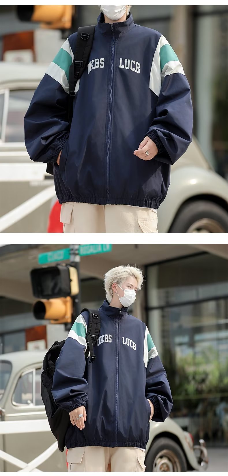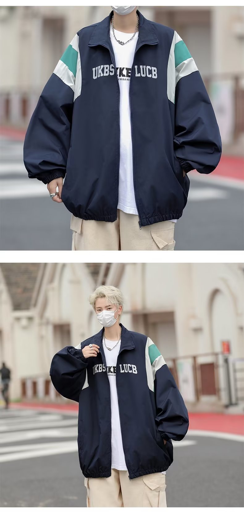 痞帥薄款嘻哈百搭拼接立領夾克外套