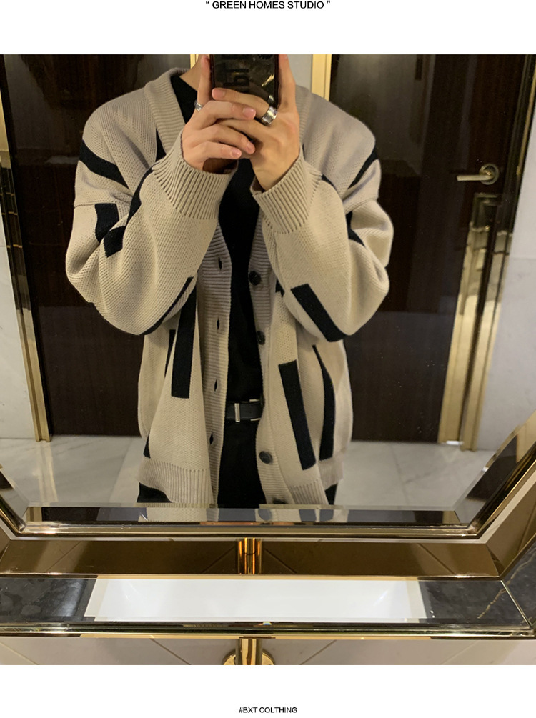寬鬆慵懶風潮流個性休閒V領針織開衫