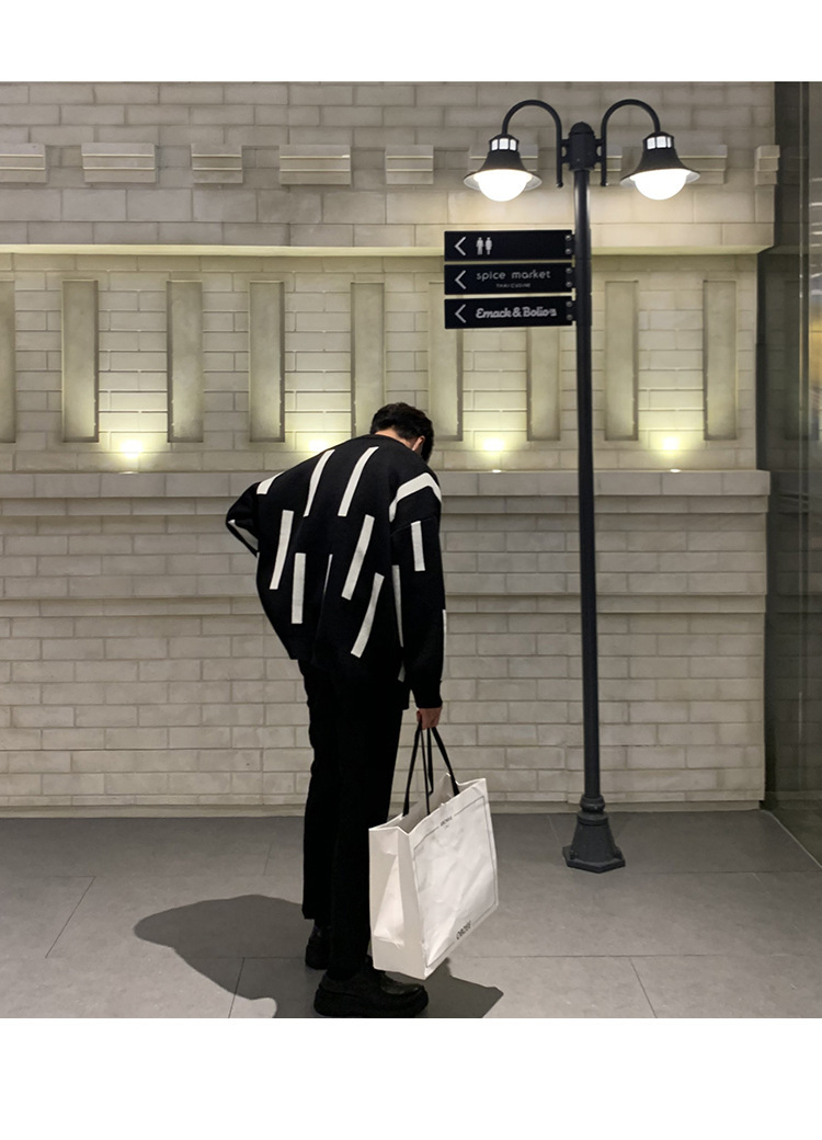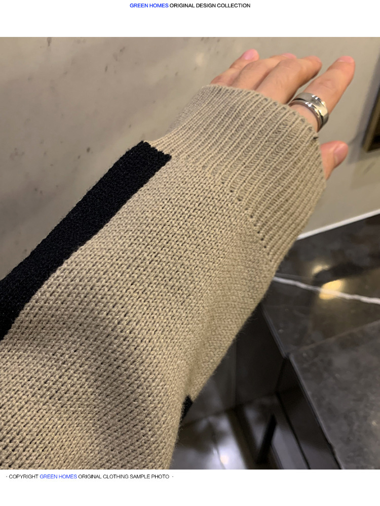 拼色毛衣潮流圓領套頭長袖針織衫