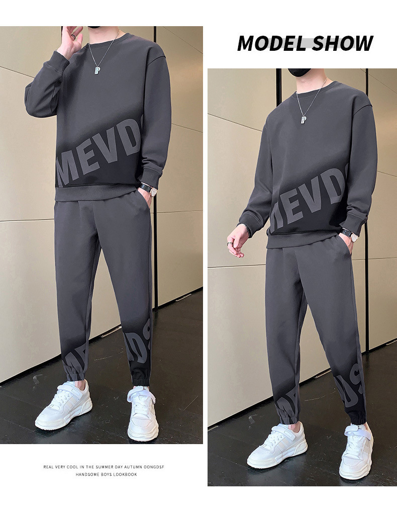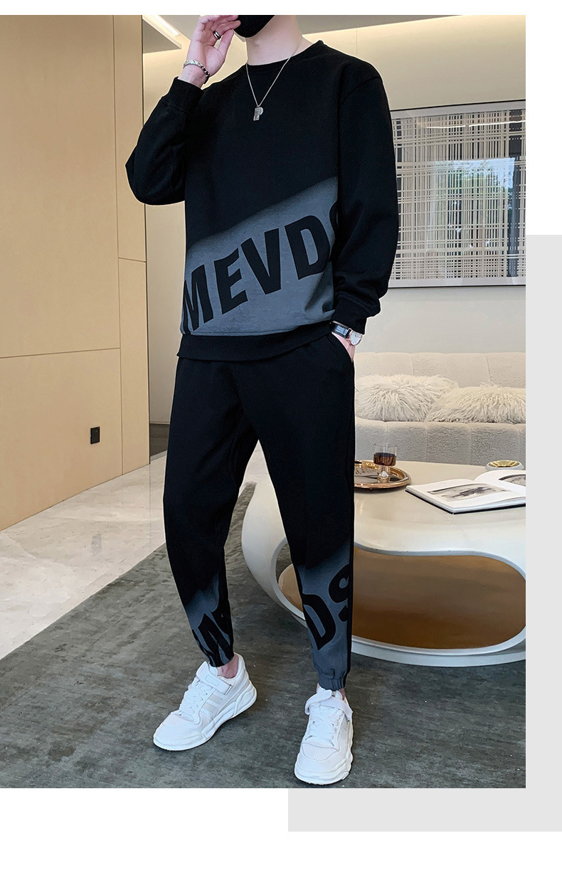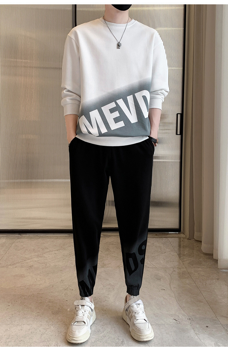 【整套】時尚印花帥氣長袖t恤+運動休閒束脚褲兩件套裝