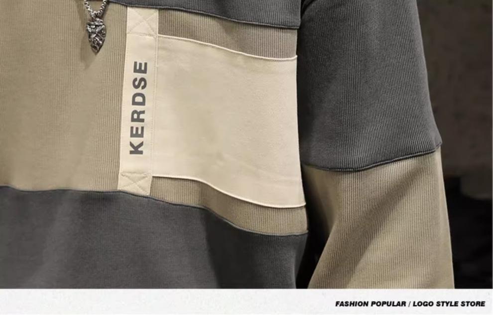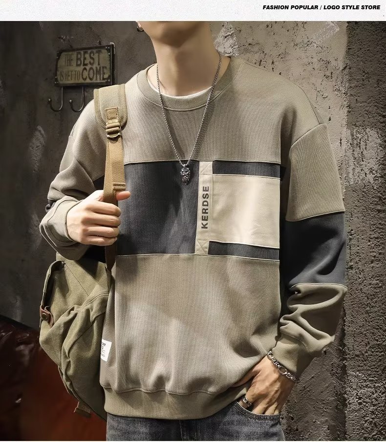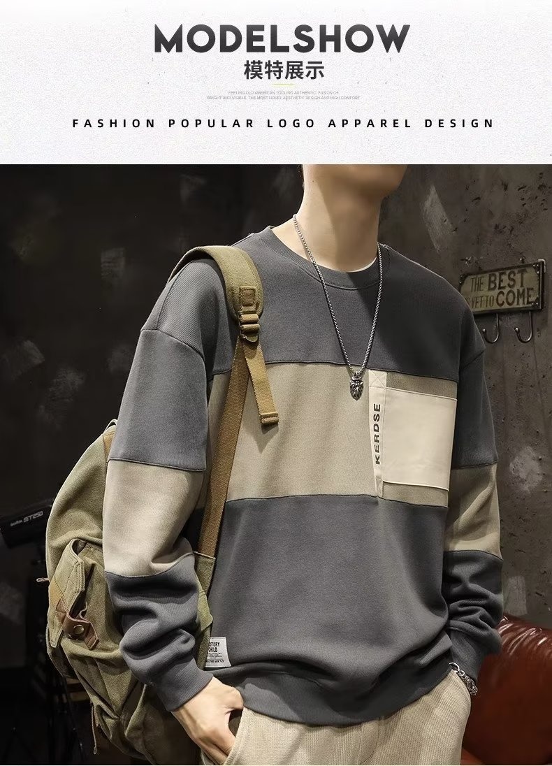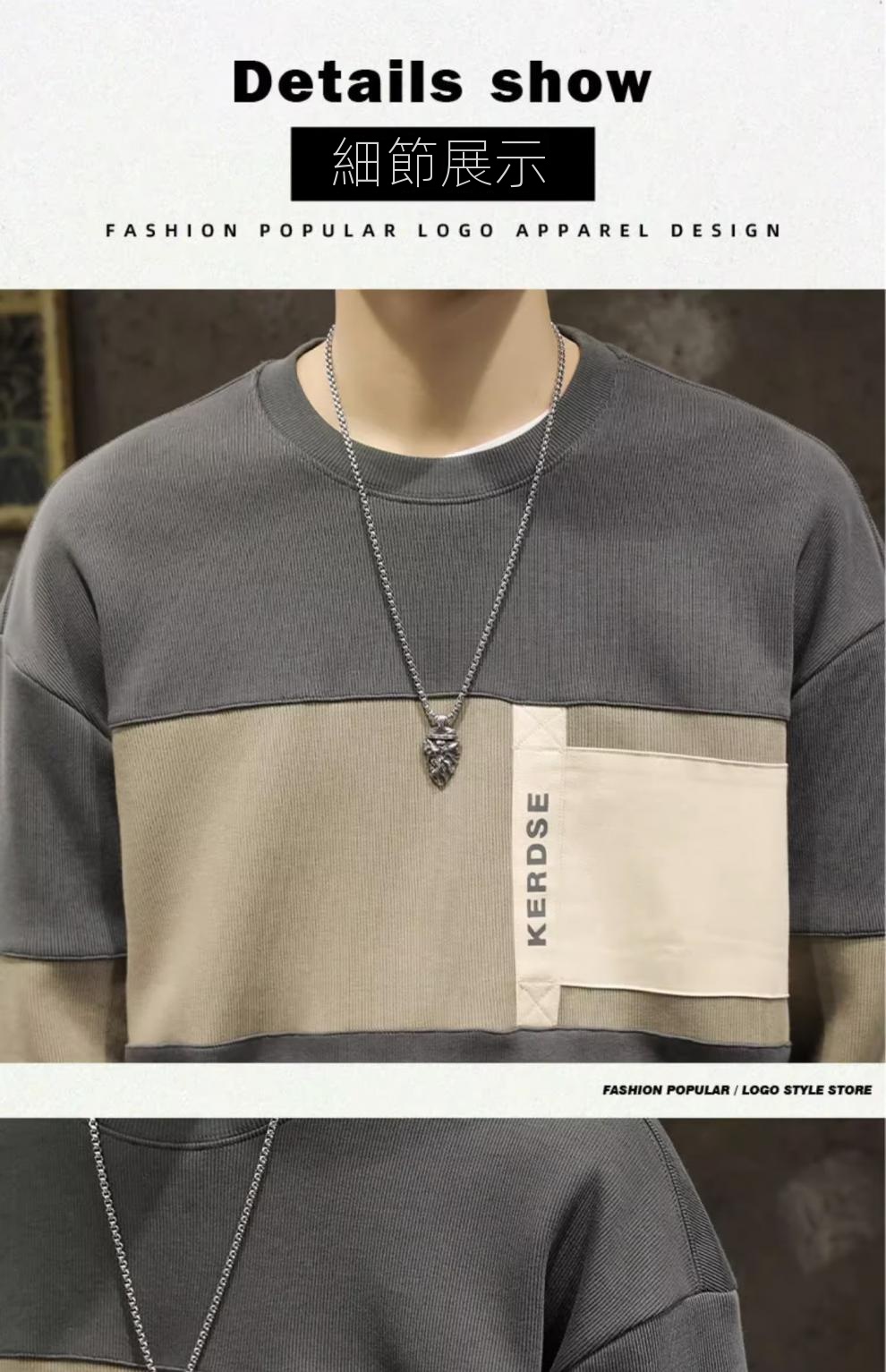 美式重磅青春時尚寬鬆寬鬆圓領拼色長袖T恤