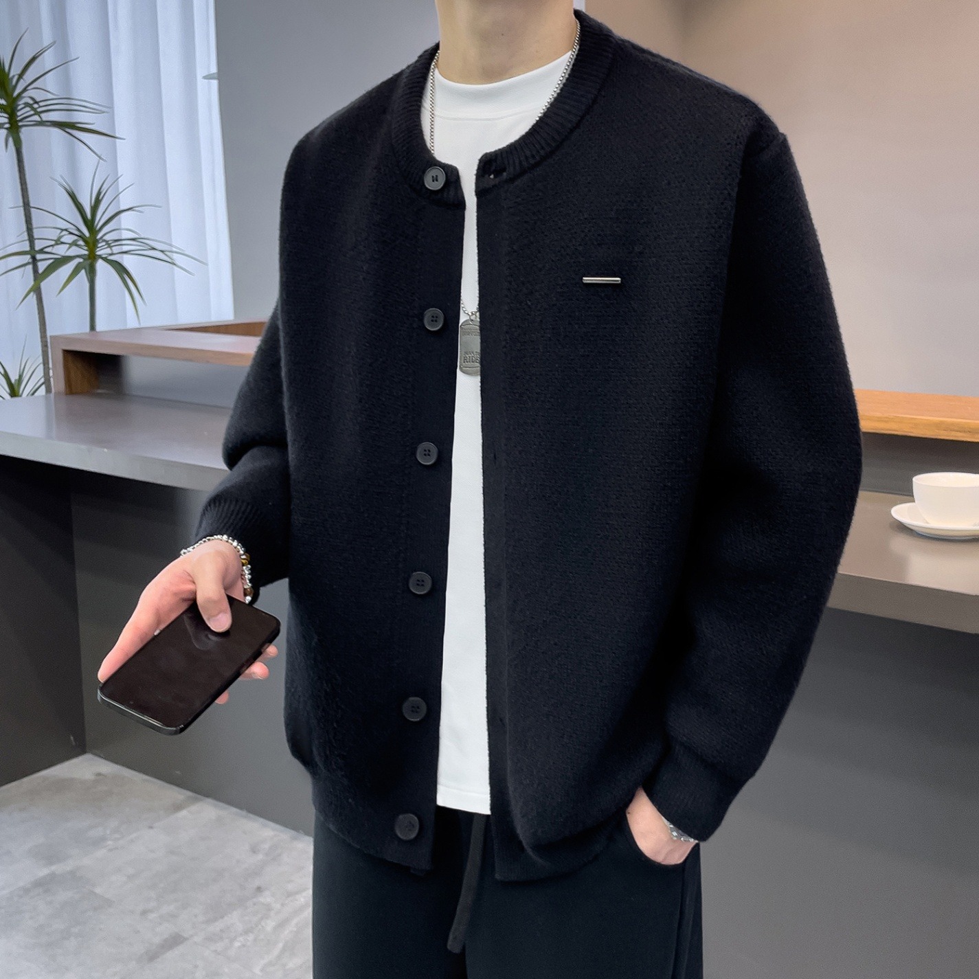 高級感寬鬆毛衣外套棒球領慵懶風針織開衫