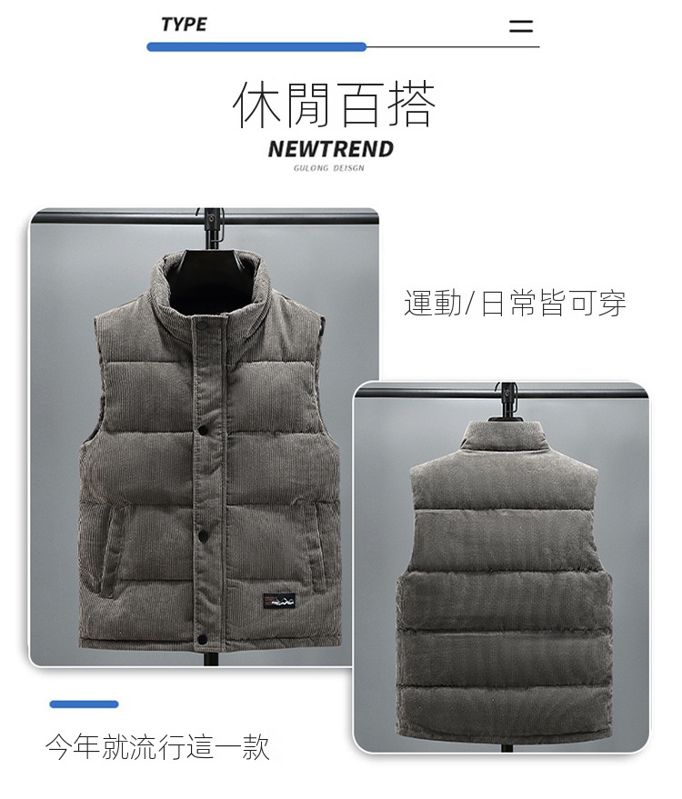 燈芯絨背心潮牌坎肩加厚棉情侶馬甲外套