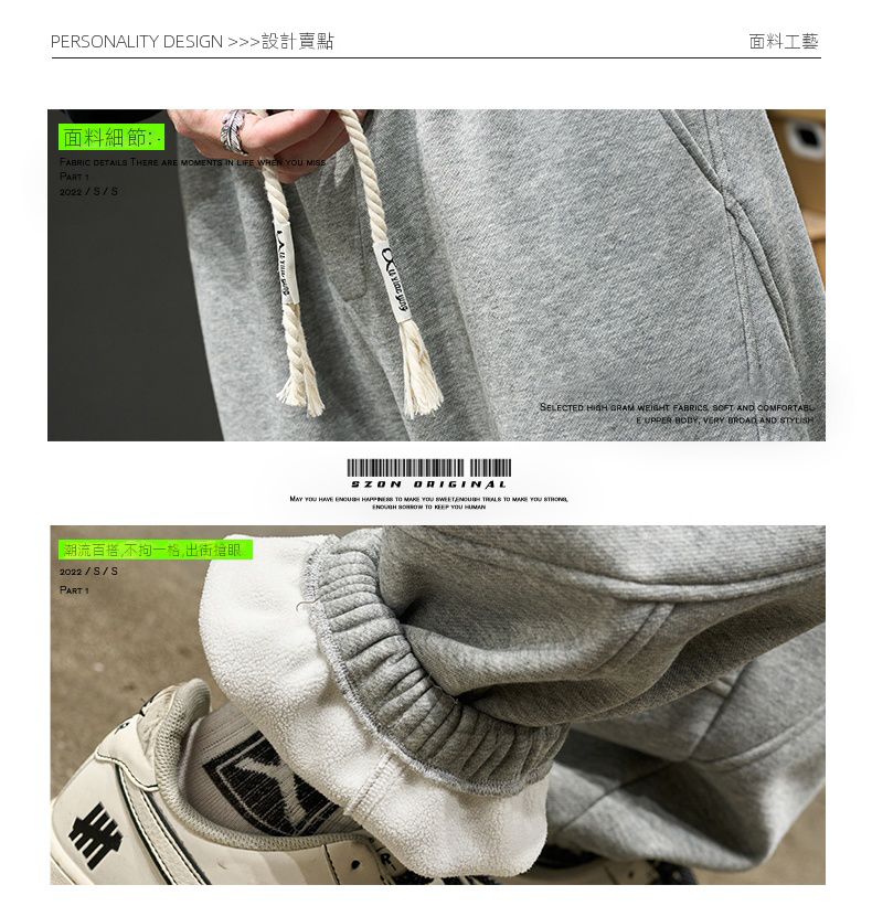 素色束腳休閒舒適刷毛拼接運動褲