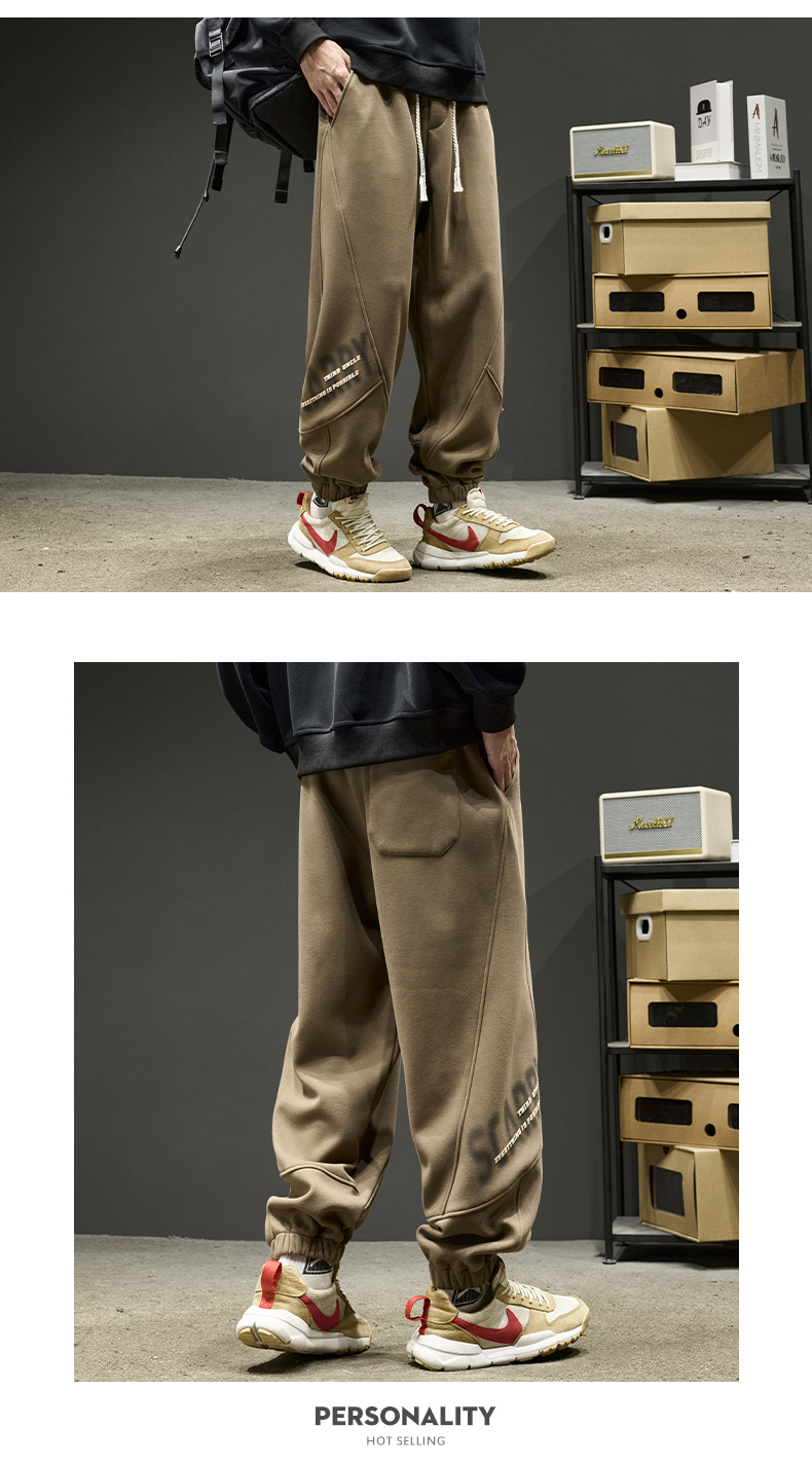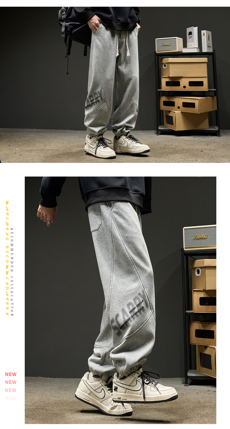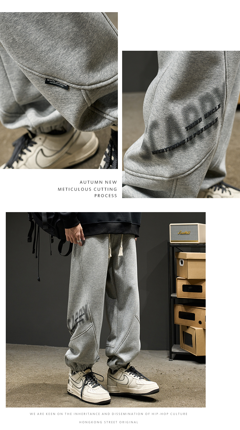 刷毛重磅美式嘻哈字母束腳寬鬆加厚運動褲