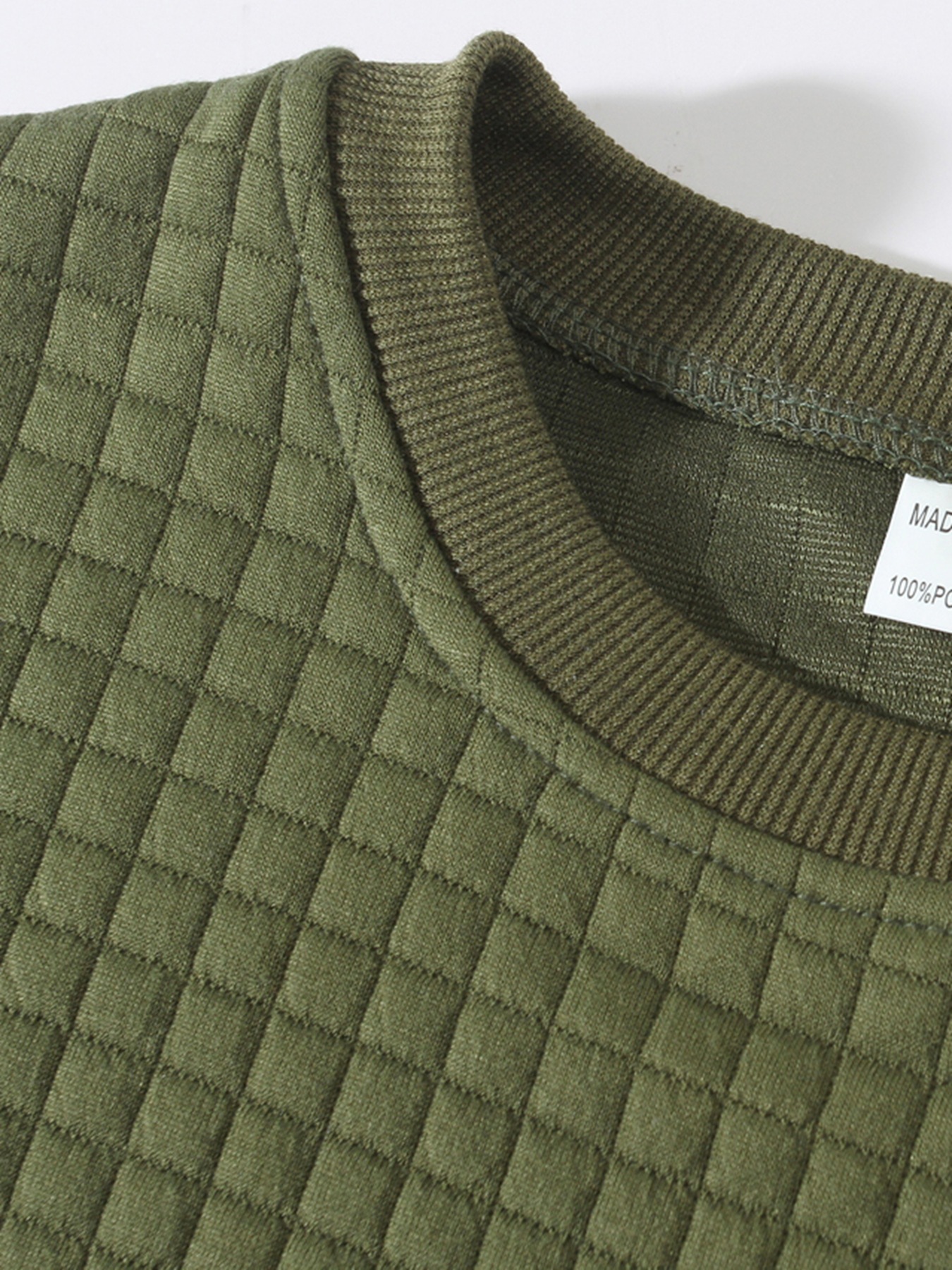 潮流純色肌理紋寬鬆圓領休閒長袖T恤