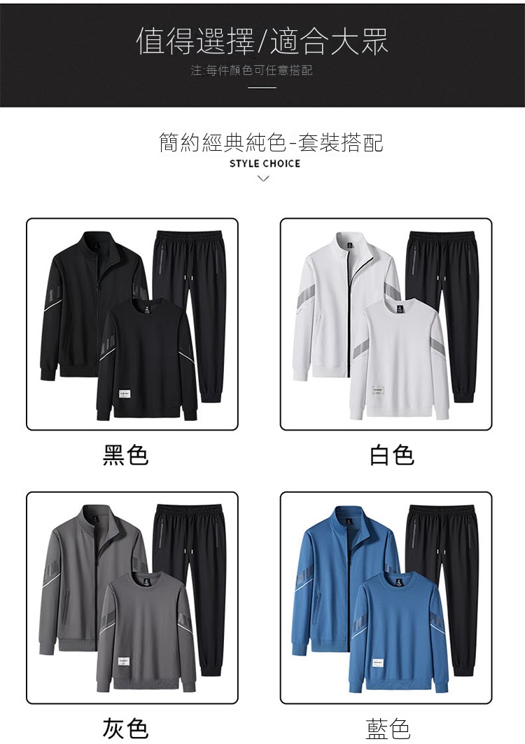 【單件/套裝】防風立領夾克外套+圓領長袖T恤+休閒運動褲三件套