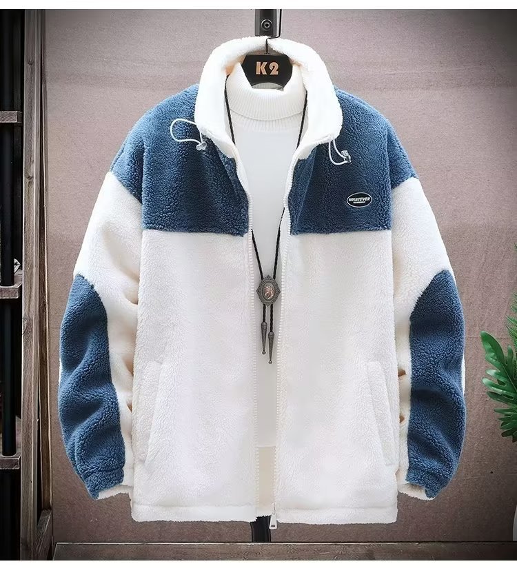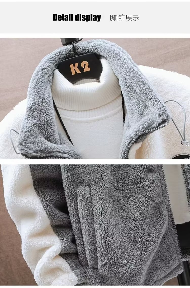 羊羔絨潮牌加厚保暖寬鬆休閒拼色棉服外套