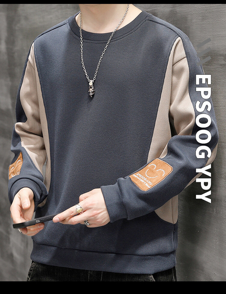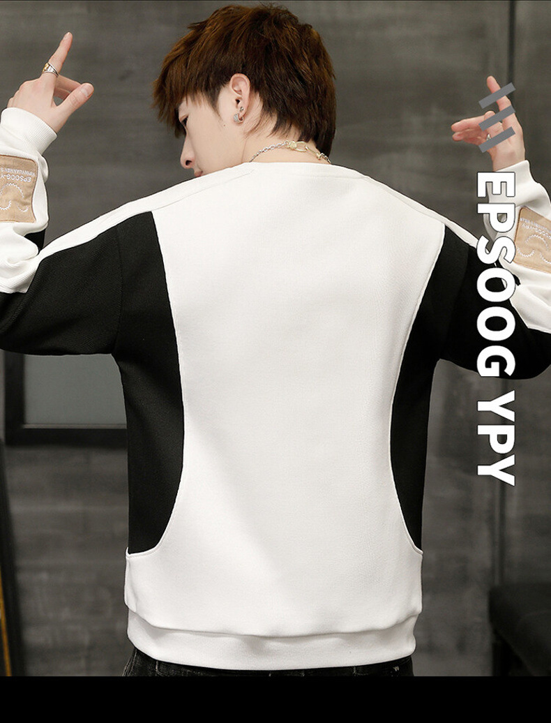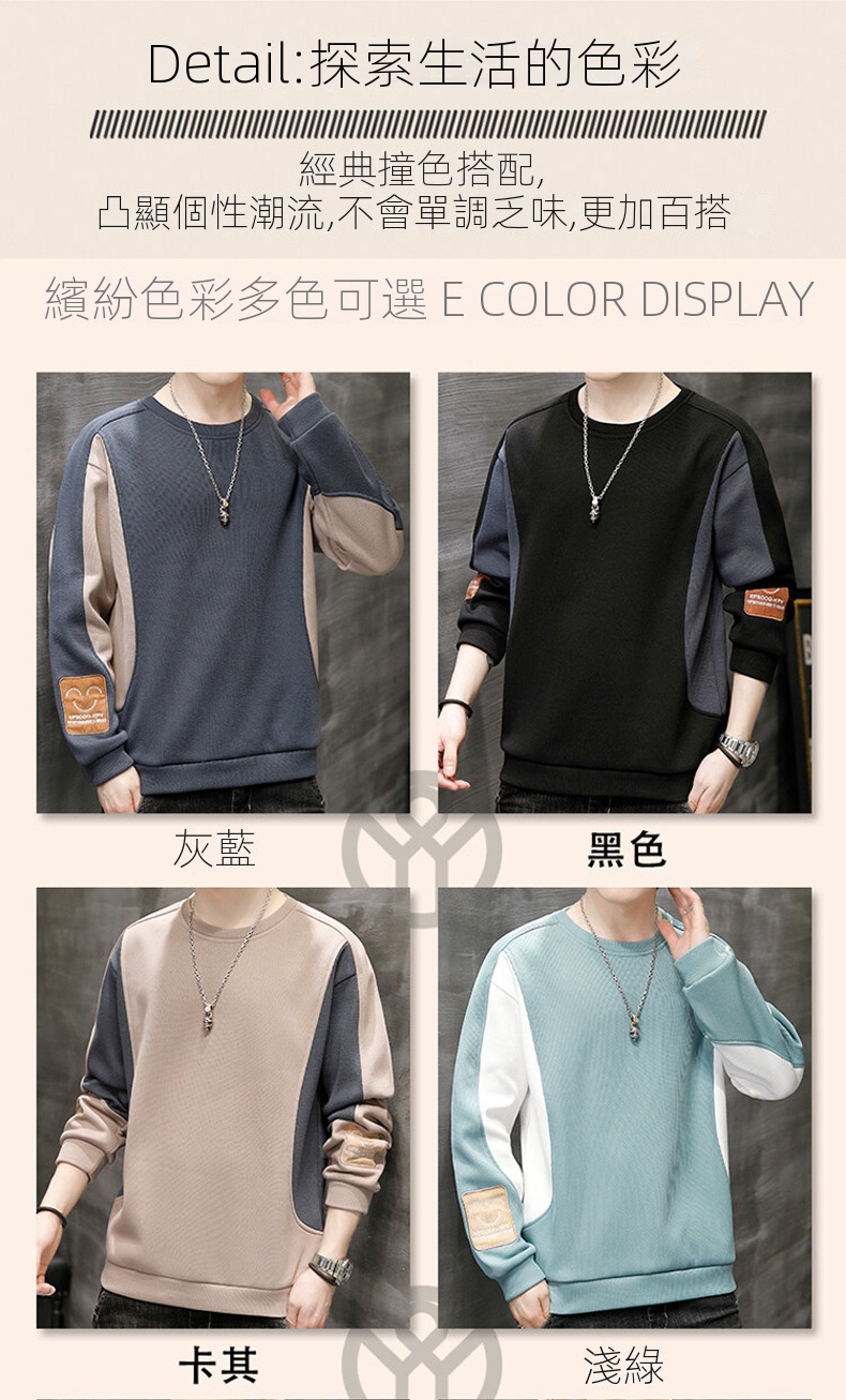 拼色毛衣潮流圓領套頭長袖針織衫