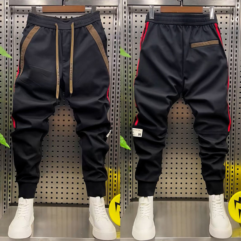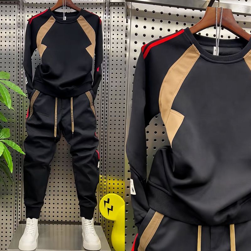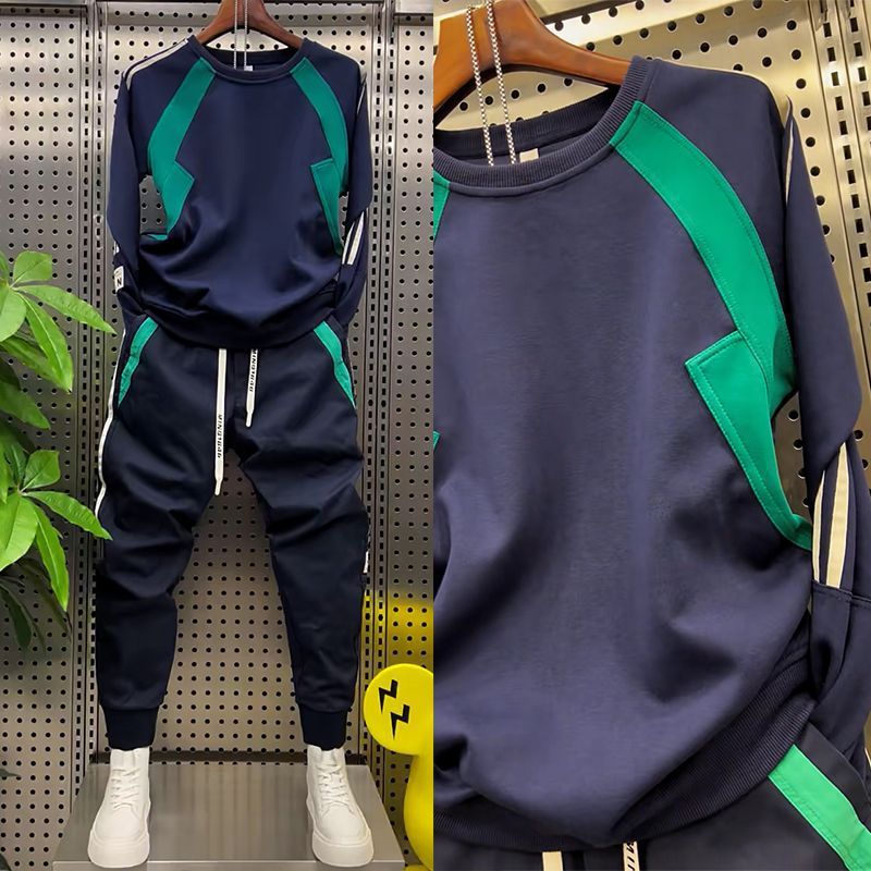 【單件/套裝】時尚寬鬆潮流百搭拼色长袖T恤+運動休閒褲兩件套