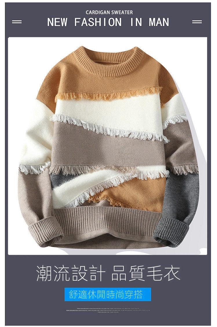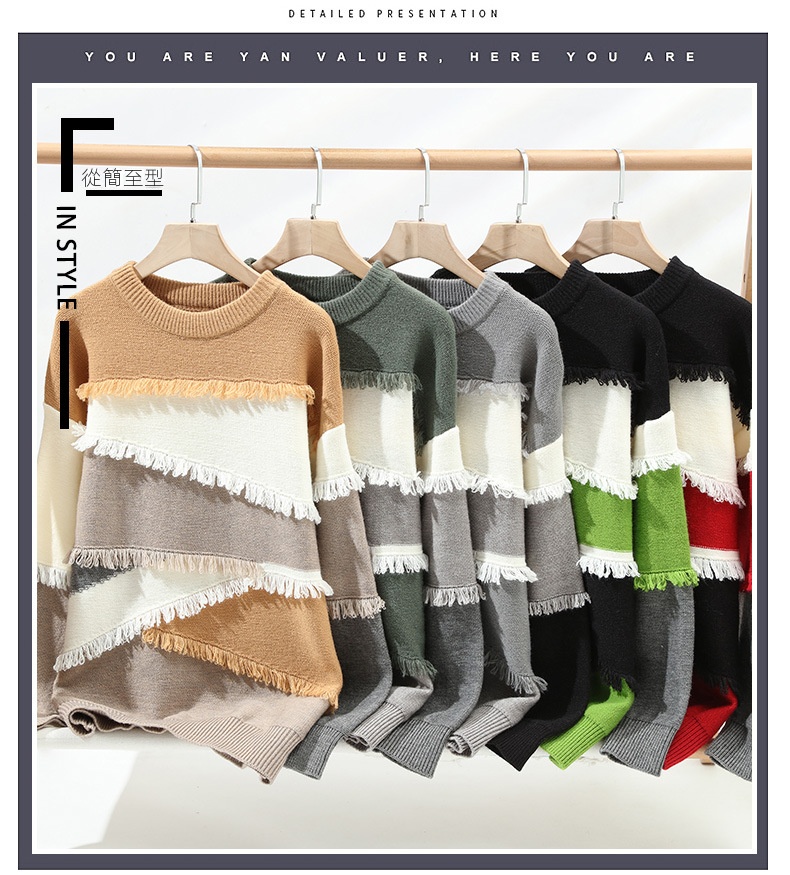 慵懶風圓領毛衣港風百搭寬鬆條紋針織衫