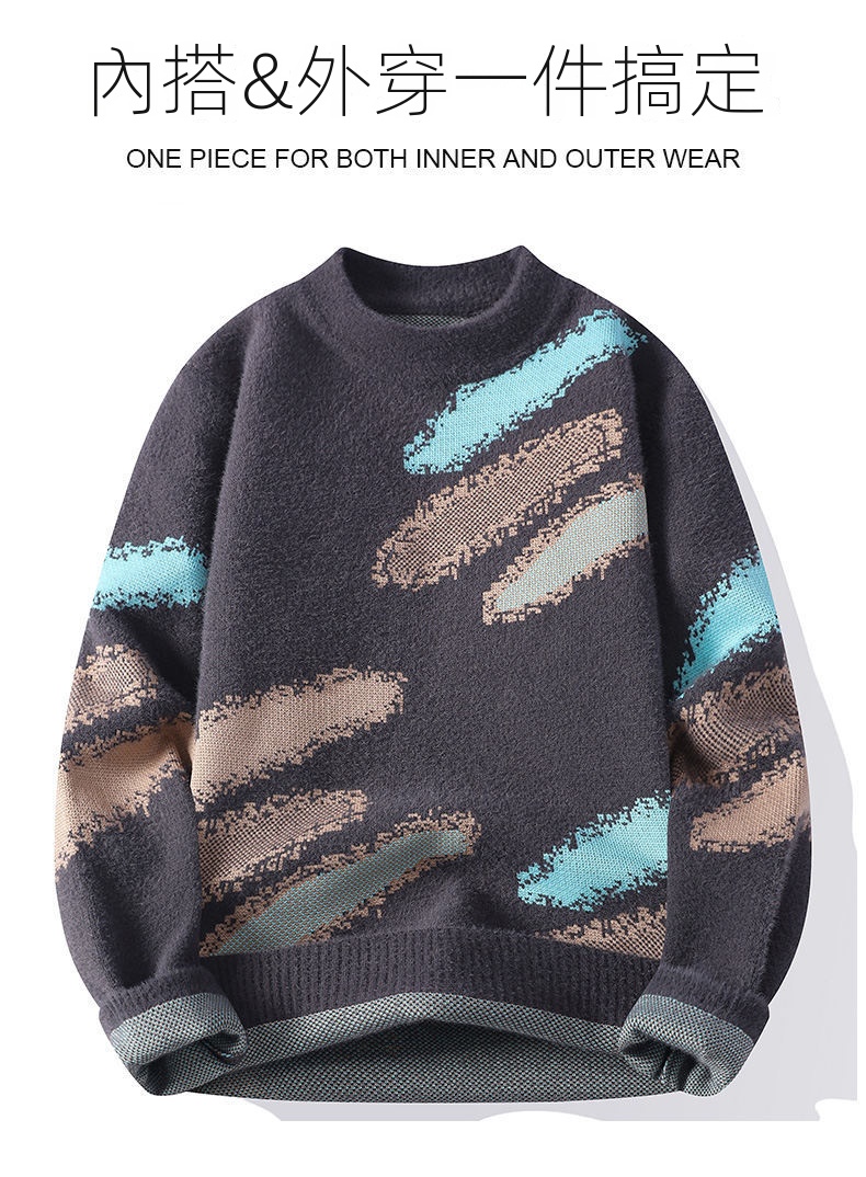慵懶風圓領毛衣港風百搭寬鬆條紋針織衫